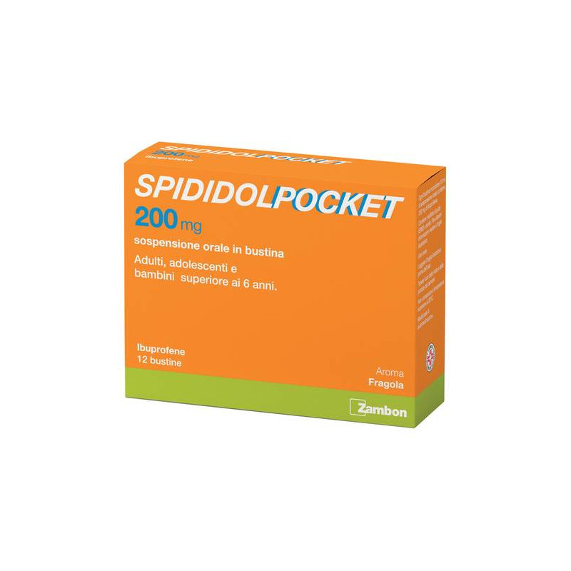 Posologia: solo per somministrazione orale e uso di breve durata. Adulti e adolescenti con peso corporeo pari o superiore a 40 kg (di eta' pari o superiore a 12 anni): se negli adulti l'uso di questo medicinalee' necessario per piu' di 3 giorni in caso di febbre oppure per piu'di 4 giorni per il trattamento del dolore o nel caso i sintomi peggiorino, deve essere consultato il medico. Se negli adolescenti (di eta' pari o superiore a 12 anni) l'uso di questo medicinale e' necessario per piu' di 3 giorni oppure se i sintomi peggiorano, deve essere consultato il medico. La dose iniziale e' di 1 o 2 bustine di Spididolpocket200 mg e successivamente, se necessario, 1 o 2 bustine di Spididolpocket 200 mg ogni 6 ore fino a un massimo di 1200 mg (6 bustine di Spididolpocket 200 mg) nell'arco di 24 ore. L'intervallo tra le dosi deve essere di almeno 6 ore. Bambini con peso corporeo uguale o inferiore a 39 kg (di eta' pari o superiore ai 6 anni): Spididolpocket 200 mg deveessere usato esclusivamente nei bambini a partire dai 20 kg di peso corporeo. La dose massima giornaliera totale di ibuprofene e' di 20-30 mg per kg di peso corporeo suddivisa in 3 o 4 singole dosi, somministrate ad intervalli di 6 - 8 ore. La dose massima giornaliera raccomandata non deve essere superata. La dose totale di 30 mg/kg di ibuprofene non deve essere superata nell'arco delle 24 ore. Nei bambini Spididolpocket 200 mg deve essere somministrato secondo le seguenti istruzioni.Peso corporeo: bambini di peso compreso tra 20 e 29 kg, dose singola in numero di bustine: 1 bustina di spididolpocket 200 mg (ibuprofene 200 mg), dose massima giornaliera in numero di bustine: 3 (equivalenti anon piu' di 600 mg di ibuprofene). Peso corporeo: bambini di peso compreso tra 30 e 39 kg, dose singola in numero di bustine: 1 bustina dispididolpocket 200 mg (ibuprofene 200 mg), dose massima giornaliera innumero di bustine: 4 (equivalenti a non piu' di 800 mg di ibuprofene). Se nei bambini di eta' pari o superiore a 6 anni l'uso di questo medicinale e' necessario per piu' di 3 giorni oppure se i sintomi peggiorano, deve essere consultato il medico. Bambini di peso corporeo inferiore ai 20 kg (di eta' inferiore ai 6 anni): Spididolpocket 200 mg nondeve essere usato nei bambini di peso corporeo inferiore a 20 kg o dieta' inferiore a 6 anni. Anziani: nei pazienti anziani il dosaggio e'lo stesso di quello degli adulti, ma e' necessario prestare maggiore cautela (vedere paragrafo 4.4). Pazienti con compromissione epatica o renale: nei pazienti con lieve o moderata compromissione epatica o renale non e' necessaria una riduzione della dose, tuttavia e' necessarioprestare maggiore cautela (vedere paragrafo 4.4). Gli effetti indesiderati possono essere limitati usando la dose minima efficace per la durata minima necessaria a controllare i sintomi (vedere paragrafo 4.4).Modo di somministrazione: massaggiare la bustina diverse volte prima di aprirla. Il contenuto della bustina puo' essere assunto con o senzacibo. Se assunto con cibo o poco dopo aver mangiato l'insorgenza dell'azione puo' essere ritardata, ma l'assunzione con il cibo migliora latollerabilita' del prodotto e riduce la probabilita' di problemi gastrointestinali. Spididolpocket puo' essere somministrato direttamente senza acqua oppure diluito in acqua.