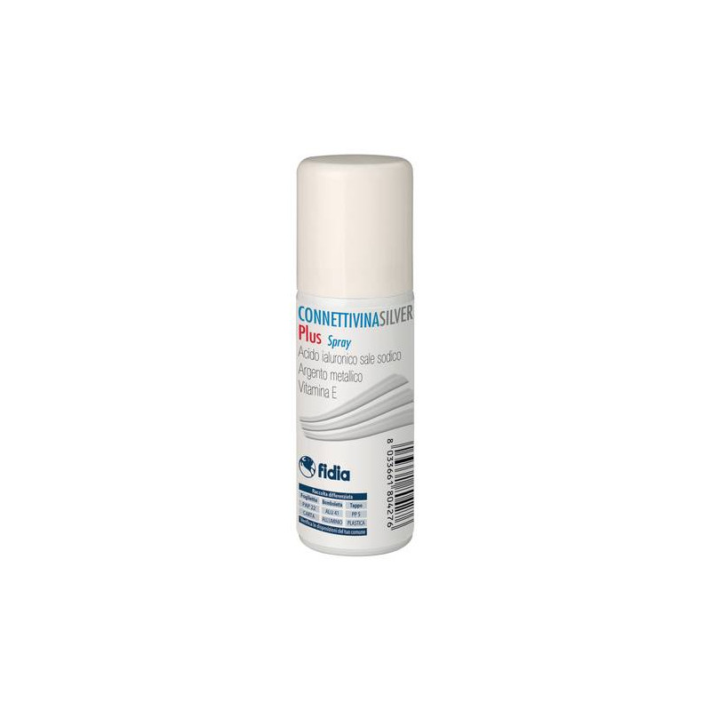 CONNETTIVINASILVER PLUS SPRAY è una sospensione spray per uso topico contenente acido ialuronico (HA), argento metallico e vitamina E.