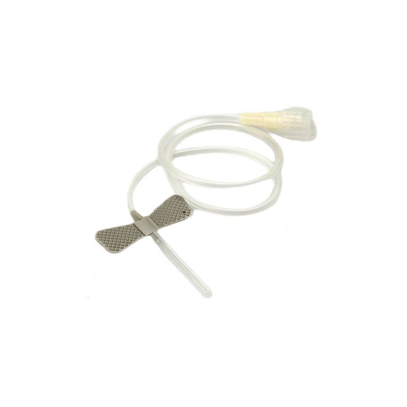 Aghi a farfalla per infusioni e/o prelievi, con ago, alette guida e cannula di raccordo.