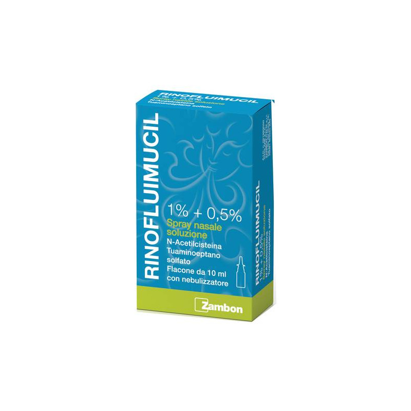 AVVERTENZE Somministrare con precauzione nei soggetti affetti da malattia vascolare occlusiva, asma, diabete ed in terapia con farmaci beta-bloccanti. Questo farmaco va somministrato con cautela in eta' pediatrica ed e' comunque controindicato nei bambini di eta' inferiore ai 12 anni. L'uso protratto dei preparati contenenti vasocostrittori puo' alterare la normale funzione della mucosa del naso e dei seni paranasali, inducendo anche assuefazione al farmaco. Il ripetere le applicazioni per lunghi periodi puo' pertanto risultare dannoso. Impiegare il prodotto con cautela, per il rischio di ritenzione urinaria, negli anziani e nei portatori di ipertrofia prostatica. L'uso, specie se prolungato, dei prodotti topici puo' dar luogo a fenomeni di sensibilizzazione: in tal caso e' necessario interrompere il trattamento e, se del caso, istituire una terapia idonea. Comunque, in assenza di risposta terapeutica completa entro pochi giorni consultare il medico; in ogni caso il trattamento non deve essere protratto per oltre una settimana. L'azione del preparato puo' essere integrata, a giudizio del medico, con una opportuna copertura antibatterica. Bisognerebbe informare i pazienti di interrompere il trattamento in caso si manifestino ipertensione arteriosa, tachicardia, palpitazioni, disturbi del ritmo cardiaco, nausea o qualsiasi segnale e sintomo neurologico (come mal di testa o peggioramento di mal di testa gia' presente). Il Tuaminoeptano solfato puo' determinare positivita' al test antidoping. Il preparato non e' per uso oftalmico. Informazioni importanti su alcuni eccipienti: questo medicinale contiene 0.005 mg di benzalconio cloruro ad ogni erogazione. L'uso prolungato puo' causare edema della mucosa nasale. L'aroma menta presente in questo medicinale contiene d-limonene che puo' causare reazioni allergiche. Oltre alle reazioni allergiche in pazienti sensibili all'allergene, pazienti non sensibili possono diventare sensibili. CATEGORIA FARMACOTERAPEUTICA Preparati rinologici, decongestionanti-simpaticomimetici in associazione. CONSERVAZIONE Nessuna particolare. CONTROINDICAZIONI/EFF.SECONDAR Ipersensibilita' al principio attivo o ad uno qualsiasi degli eccipienti. Patologia cardiovascolare, inclusa l'ipertensione. Pregressa patologia cerebrovascolare, inclusa la presenza di importanti fattori di rischio (dovuta all'attivita' alfa-simpaticomimetica). Pregresse convulsioni. Glaucoma ad angolo ristretto. Ipertiroidismo. Durante e nelle due settimane successive a terapia con inibitori delle monoaminoossidasi (IMAO). Bambini di eta' inferiore ai 12 anni. Feocromocitoma. Durante l'uso di altri agenti simpaticomimetici, inclusi altri decongestionanti nasali. Ipofisectomia o interventi chirurgici con esposizione della dura madre. DENOMINAZIONE RINOFLUIMUCIL 1% + 0,5% SPRAY NASALE SOLUZIONE ECCIPIENTI Benzalconio cloruro, ditiotreitolo, sodio edetato, sodio fosfato bibasico, sodio fosfato monobasico, sodio idrossido, alcool, ipromellosa, sorbitolo 70%, aroma naturale di menta (contenente d-limonene), acqua depurata. EFFETTI INDESIDERATI Riepilogo del profilo di sicurezza: l'uso prolungato puo' alterare le normali funzionalita' della mucosa nasale e paranasale provocando congestione nasale e inducendo assuefazione al farmaco. Riassunto riepilogativo delle reazioni avverse: somministrazioni frequenti del preparato alle dosi piu' alte possono provocare effetti collaterali di tipo simpaticomimetico (come aumento dell'eccitabilita', cardiopalmo, tremore, ecc.). Talora possono verificarsi secchezza del naso e della gola, eruzioni acneiche. Tali effetti scompaiono del tutto con la sospensione del trattamento. I seguenti effetti indesiderati possono essere associati all'uso di questo medicinale. Disturbi del sistema immunitario: ipersensibilità. Disturbi psichiatrici: ansia, allucinazione, delirio. Patologie del sistema nervoso: cefalea, irrequietezza, agitazione, insonnia, tremore. Patologie cardiache: palpitazioni, tachicardia, aritmia. Patologie vascolari: ipertensione. Patologie respiratorie, toraciche e mediastiniche: secchezza nasale e della gola, fastidio nasale, congestione nasale. Patologie gastrointestinali nausea. Patologie della cute e del tessuto sottocutaneo: orticaria, rash. Patologie renali ed urinarie: ritenzione urinaria. Patologie sistemiche e condizioni relative alla sede di somministrazione: irritabilità, assuefazione al farmaco. Popolazione pediatrica: il prodotto e' controindicato nei bambini di eta' inferiore ai 12 anni. Segnalazione delle reazioni avverse sospette. La segnalazione delle reazioni avverse sospette che si verificano dopo l'autorizzazione del medicinale e' importante, in quanto permette un monitoraggio continuo del rapporto beneficio/rischio del medicinale. Agli operatori sanitari e' richiesto di segnalare qualsiasi reazione avversa sospetta tramite il sistema nazionale di segnalazione all'indirizzo https://www.aifa.gov.it/content/segnalazioni-reazioni-avverse. GRAVIDANZA E ALLATTAMENTO Gravidanza: i dati relativi ad un limitato numero di donne in gravidanza esposte ad N-acetilcisteina non hanno indicato alcun effetto negativo sulla gravidanza stessa o sulla salute del feto/neonato. Allo stato attuale, non sono disponibili ulteriori dati epidemiologici di rilievo. Studi sugli animali con N-acetilcisteina non hanno dimostrato effetti nocivi diretti o indiretti per quanto riguarda la tossicita' riproduttiva. Non ci sono dati su donne in gravidanza esposte o studi sugli animali con il tuaminoeptano o N-acetilcisteina + tuaminoeptano. Il prodotto non e' raccomandato in gravidanza. Allattamento: non ci sono informazioni disponibili sull'escrezione dell'N-acetilcisteina e del tuaminoeptano nel latte materno. Non si puo' escludere un rischio per il lattante. Il prodotto non deve essere usato dalle mamme in allattamento. Fertilita': non sono disponibili studi sugli animali sulla fertilita' con N-acetilcisteina + tuoaminoeptano. Non sono inoltre disponibili dati sugli esseri u