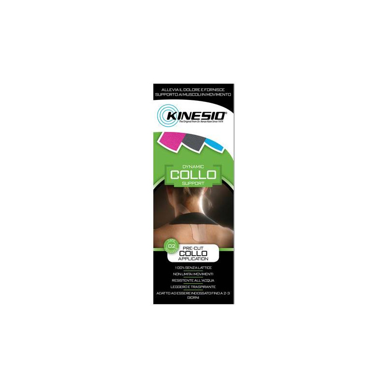 KINESIO PRE-CUT Dispositivo medico utile per dare sollievo in caso di dolore causato da affaticamento muscolare o stiramento. Regolabile e concepito per una facile applicazione alla schiena, collo, spalle, ginocchia, polsi e piedi.