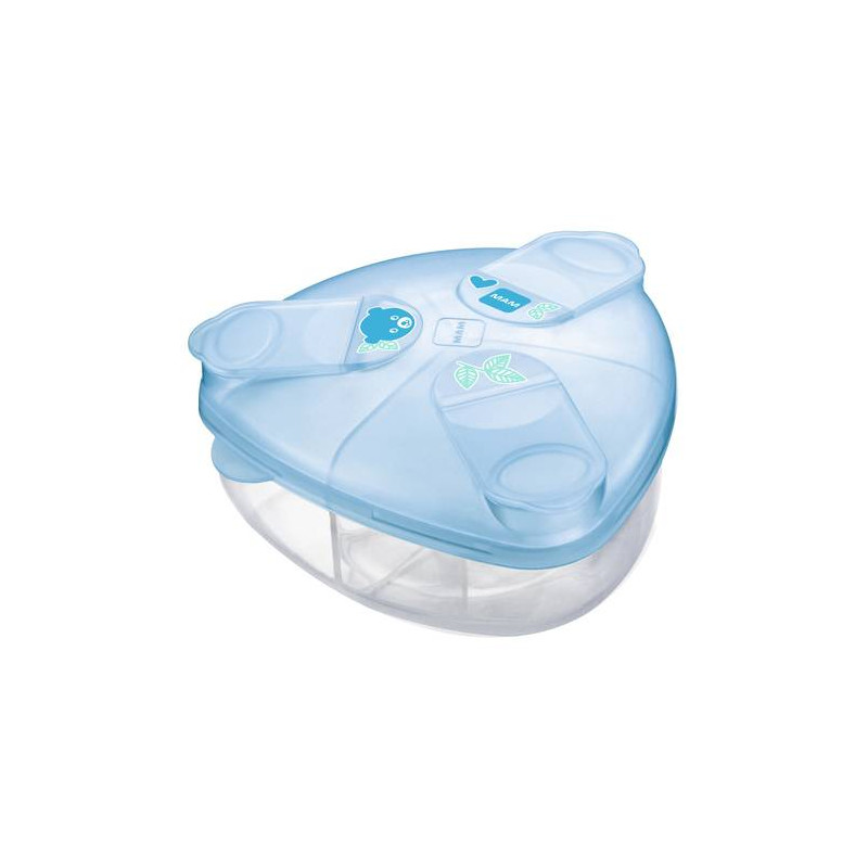 Mam Milk box Contenitore per latte in polvere facile da riempire, grazie ai tre scomparti che contengono ciascuno più di 40 g di polvere; facile da aprire e chiudere, grazie alle ampie aperture laterali che permettono di versare la polvere completamente; a prova di perdita, grazie alla chiusura ermetica.