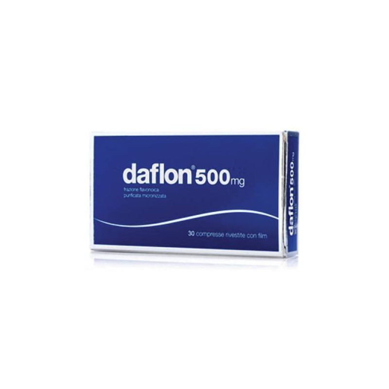 AVVERTENZE Informazioni importanti su alcuni eccipienti Daflon contiene meno di 1 mmol (23 mg) di sodio per compressa, cioe' e' essenzialmente 'senza sodio'. CATEGORIA FARMACOTERAPEUTICA Vasoprotettore e venotonico. CONSERVAZIONE Questo medicinale non richiede alcuna condizione particolare per la conservazione. CONTROINDICAZIONI/EFF.SECONDAR Ipersensibilita' al principio attivo o ad uno qualsiasi degli eccipienti elencati al paragrafo 6.1. DENOMINAZIONE DAFLON 500 MG COMPRESSE RIVESTITE CON FILM ECCIPIENTI Carbossimetilamido sodico, cellulosa microcristallina, gelatina, glicerina, ipromellosa, sodio laurilsolfato, ossido di ferro giallo E172, ossido di ferro rosso E 172, titanio diossido, macrogol 6000, magnesio stearato, talco. EFFETTI INDESIDERATI I seguenti effetti o reazioni avverse sono stati riportati e sono stati classificati secondo la seguente frequenza: molto comune (>=1/10); comune (>=1/100, <1/10); non comune (>=1/1.000, <1/100); raro (>=1/10.000, <1/1.000); molto raro (<1/10.000), non nota (la frequenza non puo' essere definita sulla base dei dati disponibili). Patologie del sistema nervoso. Raro: vertigini, cefalea, malessere. Patologie gastrointestinali. Comune: diarrea, dispepsia, nausea, vomito; non comune: colite; non nota: dolore addominale. Patologie della cute e del tessuto sottocutaneo. Raro: rash, prurito, orticaria; non nota: edema al volto, alle labbra, alla palpebra; edema di Quincke. Patologie del sistema emolinfopoietico. Non nota: trombocitopenia. Segnalazione delle reazioni avverse sospette. La segnalazione delle reazioni avverse sospette che si verificano dopo l'autorizzazione del medicinale e' importante, in quanto permette un monitoraggio continuo del rapporto rischio/beneficio del medicinale. Agli operatori sanitari e' richiesto di segnalare qualsiasi reazione avversa sospetta tramite il sistema nazionale di segnalazione all'indirizzo https://www.aifa.gov.it/content/segnalazioni-reazioni-avverse. GRAVIDANZA E ALLATTAMENTO Gravidanza: i dati relativi all'uso di frazione flavonoica purificata micronizzata in donne in gravidanza non esistono o sono in numero limitato. Gli studi sugli animali non indicano tossicita' riproduttiva (vedere paragrafo 5.3). A scopo precauzionale, e' preferibile evitare l'uso di Daflon durante la gravidanza. Allattamento: non e' noto se il principio attivo/metaboliti siano escreti nel latte materno. Il rischio per i neonati/lattanti non puo' essere escluso. Deve essere presa la decisione se interrompere l'allattamento con latte materno o interrompere la terapia/astenersi dalla terapia con Daflon tenendo in considerazione il beneficio dell'allattamento con latte materno per il bambino e il beneficio della terapia per la donna. Fertilita': studi di tossicita' riproduttiva non hanno mostrato effetti sulla fertilita' nei ratti ne' maschi ne' femmine (vedere paragrafo 5.3). INDICAZIONI Sintomi attribuibili a insufficienza venosa; stati di fragilita' capillare. Trattamento sintomatico della crisi emorroidaria acuta. INTERAZIONI Non sono stati effettuati studi di interazione. Finora non e' stata segnalata alcuna interazione farmacologica clinicamente rilevante dall'esperienza post marketing sul prodotto. POSOLOGIA Posologia: insufficienza venosa (anche del plesso emorroidario) e fragilita' capillare La dose raccomandata e' 2 compresse da assumere in due somministrazioni al giorno. Non superare la dose massima giornaliera. Crisi emorroidaria acuta: la dose raccomandata e' 3 compresse due volte al giorno durante i primi 4 giorni di trattamento; nei 3 giorni successivi la dose giornaliera e' di 4 compresse in due somministrazioni. Non superare la dose massima giornaliera. Modo di somministrazione: assumere le compresse ai due pasti principali. Durata trattamento: il trattamento non deve essere protratto oltre 7 giorni. In mancanza di una risposta terapeutica rivalutare la situazione. PRINCIPI ATTIVI Ogni compressa rivestita con film contiene 500 mg di frazione flavonoica purificata micronizzata costituita da 450 mg di diosmina e 50 mg di flavonoidi espressi in esperidina. Per l'elenco completo degli eccipienti, vedere paragrafo 6.1.