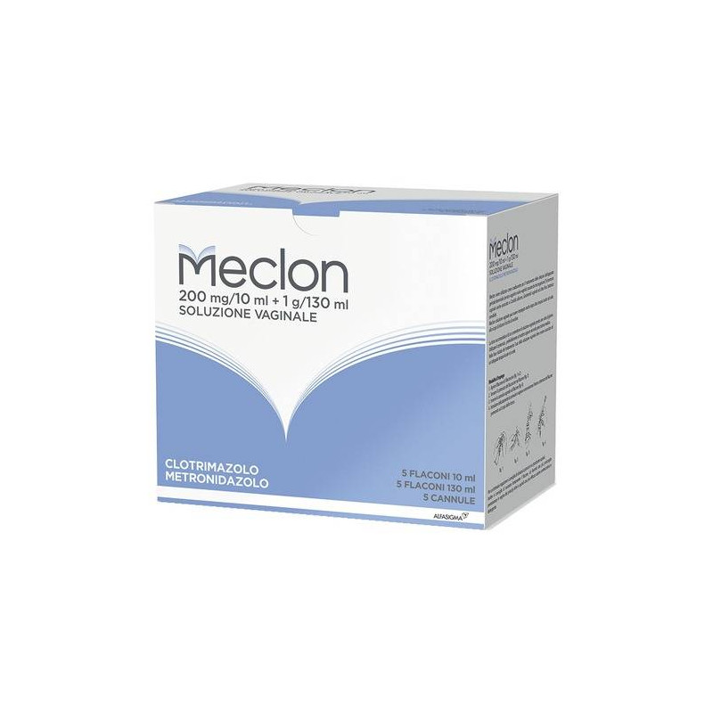 AVVERTENZE Informi il paziente di evitare il contatto con gli occhi. L'impiego contemporaneo di Metronidazolo per via orale e' soggetto alle controindicazioni, effetti collaterali ed avvertenze descritte per il prodotto summenzionato. Evitare il trattamento con Meclon durante il periodo mestruale. Con medicinali contenenti metronidazolo per uso sistemico sono stati segnalati casi di epatotossicita' severa/insufficienza epatica acuta, comprendenti casi con esito fatale, con esordio molto rapido dopo l'inizio del trattamento in pazienti affetti da sindrome di Cockayne. Pertanto, in questa popolazione metronidazolo deve essere utilizzato dopo un'attenta valutazione del rapporto rischio-beneficio e solo in mancanza di trattamenti alternativi. Le analisi della funzionalita' epatica devono essere effettuate appena prima dell'inizio della terapia, durante e dopo la fine del trattamento, fino a quando i parametri della funzionalita' epatica non saranno rientrati nella norma o non saranno raggiunti i valori al basale. Se i valori delle analisi della funzionalita' epatica dovessero aumentare notevolmente durante il trattamento, il farmaco deve essere interrotto. I pazienti affetti da sindrome di Cockayne devono essere avvisati della necessita' di segnalare immediatamente al medico qualsiasi sintomo di potenziali lesioni epatiche e di interrompere il trattamento con metronidazolo. CATEGORIA FARMACOTERAPEUTICA Antinfettivi ed antisettici ginecologici/associazioni di derivati imidazolici. CONSERVAZIONE Crema vaginale: non richiede alcuna particolare condizione per la conservazione. Soluzione vaginale: non conservare a temperatura superiore a 25 gradi C. CONTROINDICAZIONI/EFF.SECONDAR Ipersensibilita' verso i principi attivi od uno qualsiasi degli eccipienti. DENOMINAZIONE MECLON ECCIPIENTI Crema vaginale. Eccipienti: Stearato di glicole e polietilenglicole; paraffina liquida; sodio metile p-Idrossibenzoato; sodio propile p-Idrossibenzoato; acqua depurata. Soluzione vaginale. Flacone da 10 ml; eccipienti: alcool ricinoleilico; etanolo; acqua depurata. Flacone da 130 ml; eccipienti: sodio idrossido (per aggiustamento pH); acido cloridrico (per aggiustamento pH); acqua depurata. EFFETTI INDESIDERATI Dato lo scarso assorbimento per applicazione locale dei principi attivi Metronidazolo e Clotrimazolo, le reazioni avverse riscontrate con le formulazioni topiche sono limitate a. Disturbi del sistema immunitario. Non nota (la frequenza non puo' essere definita sulla base dei dati disponibili): reazioni di ipersensibilita'. Patologie della cute e del tessuto sottocutaneo. Molto rari (frequenza <1/10.000): fenomeni irritativi locali quale prurito, dermatite allergica da contatto, eruzioni cutanee. L'eventuale manifestarsi di effetti indesiderati comporta l'interruzione del trattamento. Segnalazione delle reazioni avverse sospette. La segnalazione delle reazioni avverse sospette che si verificano dopo l'autorizzazione del medicinale e' importante, in quanto permette un monitoraggio continuo del rapporto beneficio/rischio del medicinale. Agli operatori sanitari e' richiesto di segnalare qualsiasi reazione avversa sospetta tramite il sistema nazionale di segnalazione all'indirizzo https://www.aifa.gov.it/content/segnalazioni-reazioniavverse. GRAVIDANZA E ALLATTAMENTO In gravidanza il prodotto deve essere impiegato solo in caso di effettiva necessita' e sotto il diretto controllo del medico. INDICAZIONI Crema vaginale: cervico-vaginiti e vulvo-vaginiti causate da Trichomonas vaginalis anche se associato a Candida albicans, Gardnerella vaginalis ed altra flora batterica sensibile. MECLON crema vaginale puo' essere impiegato anche nel partner a scopo profilattico. Soluzione vaginale: coadiuvante nella terapia di cervico-vaginiti, vulvo-vaginiti causate da Trichomonas vaginalis anche se associato a Candida albicans, Gardnerella vaginalis ed altra flora batterica sensibile. MECLON soluzione vaginale puo' essere impiegato anche dopo altra terapia topica od orale, allo scopo di ridurre il rischio di recidive. INTERAZIONI Nessuna. POSOLOGIA Crema vaginale: somministrare profondamente in vagina il contenuto di un applicatore una volta al giorno per almeno sei giorni consecutivi, preferibilmente alla sera prima di coricarsi, oppure secondo prescrizione medica. Nelle trichomoniasi, maggior sicurezza di risultato terapeutico si verifica con il contemporaneo uso di Metronidazolo per via orale sia nella donna non gestante che nel partner maschile. Per un'ottimale somministrazione si consiglia una posizione supina, con le gambe leggermente piegate ad angolo. Per ottenere una migliore sterilizzazione e' preferibile spalmare un po' di MECLON crema vaginale anche esternamente, a livello perivulvare e perianale. Se il medico prescrive il trattamento del partner a scopo profilattico, la crema deve essere applicata sul glande e sul prepuzio per almeno sei giorni. Istruzioni per l'uso: dopo aver riempito di crema un applicatore, somministrare la crema in vagina mediante pressione sul pistone, fino a completo svuotamento. Soluzione vaginale: somministrare la soluzione vaginale pronta una volta al giorno, preferibilmente al mattino, oppure secondo prescrizione medica. Nella fase di attacco l'uso della soluzione vaginale deve essere associato ad adeguata terapia topica e/o orale. L'irrigazione va eseguita preferibilmente in posizione supina. Un lento svuotamento del flacone favorira' una piu' prolungata permanenza in vagina dei principi attivi e quindi una piu' efficace azione antimicrobica e detergente. Istruzioni per l'uso: dopo aver versato il contenuto del flaconcino nel flacone, inserire la cannula vaginale sul collo del flacone stesso. Introdurre la cannula in vagina e somministrare l'intero contenuto. PRINCIPI ATTIVI Crema vaginale, 100 g contengono principi attivi: metronidazolo 20 g; clotrimazolo 4 g. Eccipienti: contiene sodio metil p-idrossibenzoato e sodio propil p-idrossibenzoato. Per l'elenco completo degli eccipienti, vede