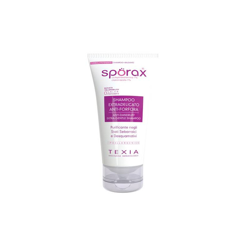 sporax SHAMPOO EXTRADELICATO ANTI-FORFORA Shampoo antiforfora extradelicato ideale nella dermatite seborroica ed efficace anche per: prurito semplice, forfora secca (pityariasis sicca), forfora grassa (pityariasis steatosica) e pityarisis versicolor.