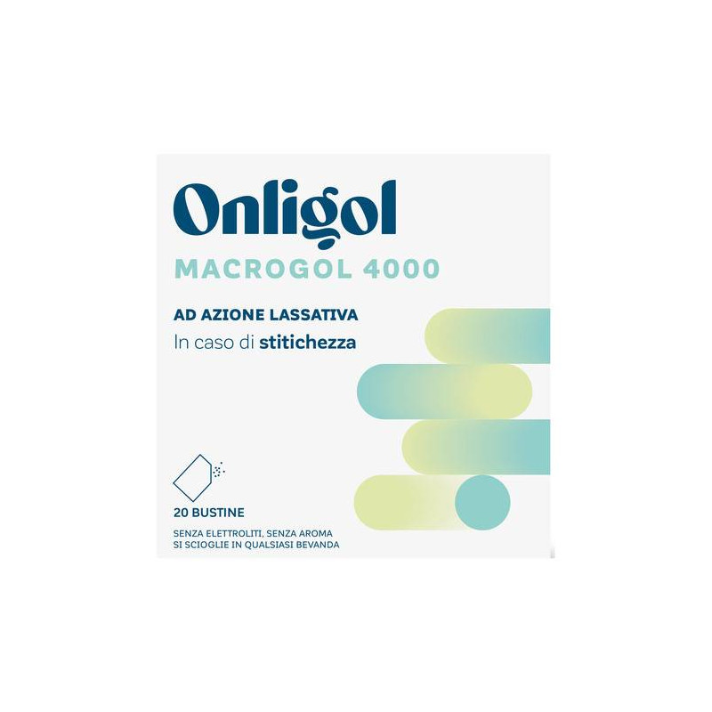 Onligol è un lassativo in polvere per soluzione orale a base di Macrogol 4000. Non contiene eccipienti, aromatizzanti e zuccheri. Si può sciogliere in qualsiasi bevanda (es. tè, tisane, latte, brodo o succo di frutta) e non ne altera il sapore.