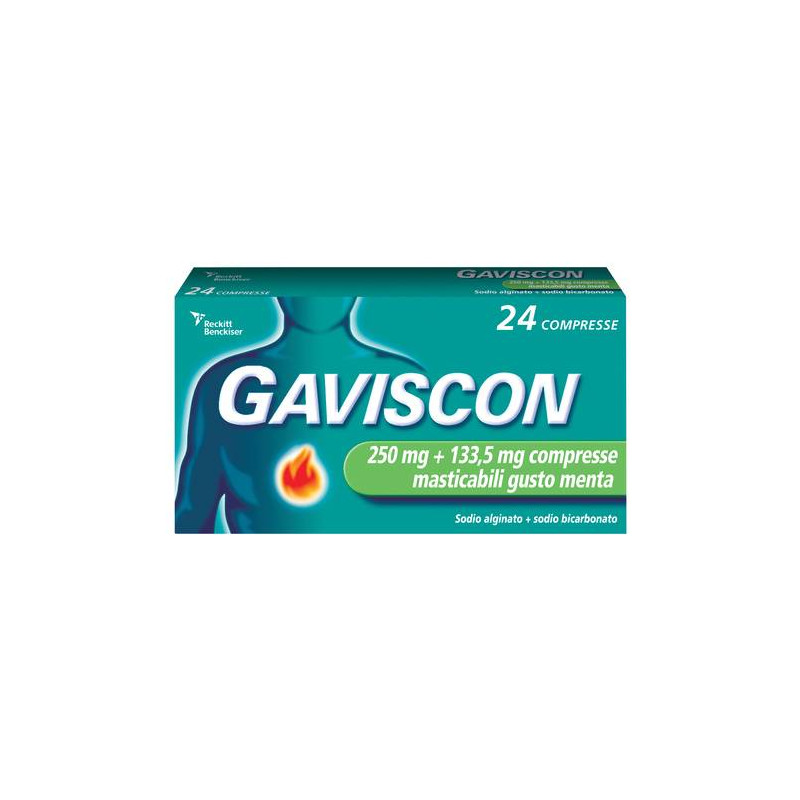 Questo farmaco da 500 mg + 267 mg compresse masticabili gusto menta. Una compressa contiene: sodio alginato 500 mg; sodio bicarbonato 267 mg. Questo farmaco da 250 mg + 133,5 mg compresse masticabili gusto menta. Una compressa contiene: sodio alginato 250 mg; sodio bicarbonato 133,5 mg. Questo farmaco da 250 mg + 133,5 mg compresse masticabili gusto fragola. Una compressa contiene: sodio alginato 250 mg, sodio bicarbonato 133,5 mg. Questo farmaco da 500 mg/10 ml + 267 mg/10 ml sospensione orale. 10 ml contengono: sodio alginato 500 mg; sodio bicarbonato 267 mg. Questo farmaco da 500 mg/10 ml + 267 mg/10 ml sospensione orale aroma menta. 10 ml contengono: sodio alginato 500 mg; sodio bicarbonato 267 mg.
