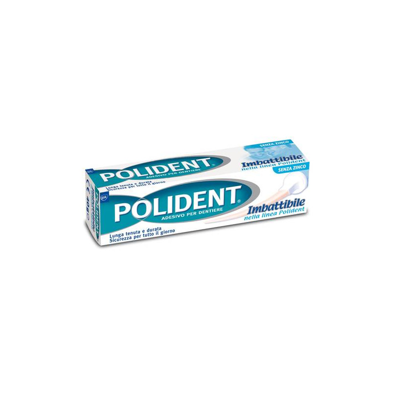 POLIDENT Imbattibile Aumenta la capacità di masticazione migliorando la stabilità della protesi, per affrontare con disinvoltura ogni momento della giornata. Rinfresca l’alito. Aiuta a prevenire le infiltrazioni delle particelle di cibo sotto la dentiera. Non contiene zinco.