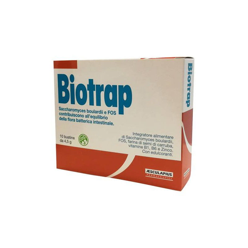 Integratore alimentare di Saccharomyces cerevisiae var. boulardii, FOS, farina di semi di carruba, vitamine B1, B6 e zinco.