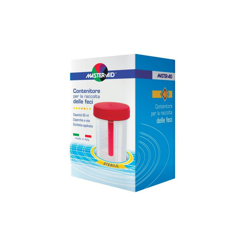 Prodotto per le analisi coprologiche, con cucchiaino, coperchio a vite ed etichetta adesiva preapplicata per l'identificazione del campione. Sterilizzato a raggi beta. Dispositivo IVD.