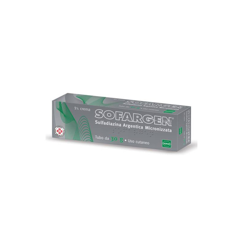 AVVERTENZE Sofargen deve essere applicato con cautela in presenza di insufficienza epatica o renale. L'uso di Sofargen puo' essere rischioso in soggetti che presentano manifesto deficit di glucosio-6-fosfato deidrogenasi,poiche' possono verificarsi fenomeni emolitici. L'uso prolungato delprodotto puo' dar luogo a fenomeni di sensibilizzazione. In tale evenienza occorre interrompere il trattamento ed adottare idonee misure terapeutiche. Altrettanto dicasi in caso di superinfezione da microrganismi resistenti. Nel trattamento di ustioni di un'estesa parte del corpole concentrazioni sieriche di sulfamidico possono raggiungere nell'adulto quelle terapeutiche. Pertanto in questi pazienti sarebbe opportuno controllare tali livelli sierici, la funzionalita' renale, la presenza di eventuali cristalli di sulfamidici nelle urine e la funzionalita' epatica, interrompendo la terapia nel caso in cui la funzionalita' epatica e/o renale fossero compromesse. Inoltre, visto che il glicole propilenico, presente come eccipiente nella composizione, puo' determinare iperosmolalita' quando il prodotto viene applicato su vaste aree ustionate, deve essere periodicamente controllata l'osmolalita' siericae, se necessario, il trattamento deve essere interrotto. CATEGORIA FARMACOTERAPEUTICA Antibiotici e chemioterapici per uso topico, sulfonamidi. CONSERVAZIONE Conservare a temperatura inferiore a 30 gradi C. Il prodotto deve essere utilizzato entro 6 mesi dalla prima apertura del contenitore. CONTROINDICAZIONI/EFF.SECONDAR Ipersensibilita' al principio attivo o ad uno qualsiasi degli eccipienti. Poiche' i sulfamidici possono aumentare il rischio di ittero neonatale, Sofargen non deve essere impiegato nelle donne al termine dellagravidanza, nei prematuri e nei neonati nei primi mesi di vita. DENOMINAZIONE SOFARGEN 1% CREMA ECCIPIENTI Alcool stearilico; isopropile miristato; propilenglicole; polietilenglicolmonostearato; poliossietilensorbitanmonolaurato; metil-p-ossibenzoato; acqua distillata. EFFETTI INDESIDERATI Sono stati segnalati alcuni casi di leucopenia transitoria (0,4%), rari disturbi locali (dolore e bruciore) e rare reazioni locali di naturaallergica (0,3%). Non si possono escludere gli effetti indesiderati classici dei sulfamidici somministrati per via sistemica, in caso di trattamento di estese parti del corpo. Segnalazione delle reazioni avverse sospette. La segnalazione delle reazioni avverse sospette che si verificano dopo l'autorizzazione del medicinale e' importante, in quantopermette un monitoraggio continuo del rapporto beneficio/rischio delmedicinale. Agli operatori sanitari e' richiesto di segnalare qualsiasi reazione avversa sospetta tramite il sistema nazionale di segnalazione all'indirizzo http://www.agenziafarmaco.gov.it/it/responsabili. GRAVIDANZA E ALLATTAMENTO Non esistendo esaurienti dati sperimentali sugli eventuali effetti delfarmaco sul feto, il Sofargen non dovrebbe essere impiegato durante la gravidanza e nell'allattamento a meno che, a giudizio del medico, ilsuo impiego sia indispensabile ed essenziale per la gestante (vedere4.3). INDICAZIONI Profilassi e trattamento antibatterico locale delle infezioni in casodi ustioni di II e III grado; trattamento antibatterico locale di ulcere varicose e piaghe da decubito infette ed in genere di affezioni dermatologiche infette o suscettibili di superinfezioni. INTERAZIONI Enzimi proteolitici locali, applicati contemporaneamente a Sofargen, possono essere inattivati dalla presenza di ioni argento. POSOLOGIA Nelle ustioni Sofargen va applicato il piu' precocemente possibile. Dopo una rapida detersione delle parti lese, stendere subito sulle superfici ustionate uno strato uniforme di crema di 2 o 3 mm di spessore. La crema puo' essere applicata sia direttamente sulle lesioni, eventualmente con l'aiuto di un guanto sterile, sia previamente stesa su una garza sterile. L'applicazione di Sofargen deve continuare senza interruzione, una o due volte al giorno, finche' sussistano possibilita' d'infezione e fino alla completa cicatrizzazione, sia nelle riparazioni spontanee, sia in quelle chirurgiche. Ad ogni rinnovo della medicazionedetergere accuratamente le ferite con acqua o con soluzione fisiologica mediante docciature o spugnature. Avere cura di riapplicare tempestivamente la crema sulle superfici da cui sia stata inavvertitamente rimossa. Negli altri casi, ulcere varicose, piaghe da decubito, ferite eaffezioni dermatologiche suscettibili di infezione, detergere ove necessario la parte lesa ed applicare uno strato di crema di 2-3 mm di spessore, seguendo lo stesso criterio descritto per il trattamento delleustioni. La lesione deve essere mantenuta sempre completamente copertadal medicamento. Qualora occorresse una medicazione tipo gambaletto,svolgere porzioni di 20-30 cm di una benda di adeguata lunghezza, stendervi uno strato abbondante di crema, riavvolgere la parte impregnata,svolgerne altri 20-30 cm e ripetere l'operazione fino a che l'interalunghezza della benda sia stata completamente impregnata, quindi praticare il bendaggio richiesto. PRINCIPI ATTIVI Sofargen 1% crema contiene 1 g di Sulfadiazina argentica micronizzata.Eccipienti con effetti noti: alcol stearilico, propilenglicole, metilp-ossibenzoato. Per l'elenco completo degli eccipienti, vedere paragrafo 6.1.