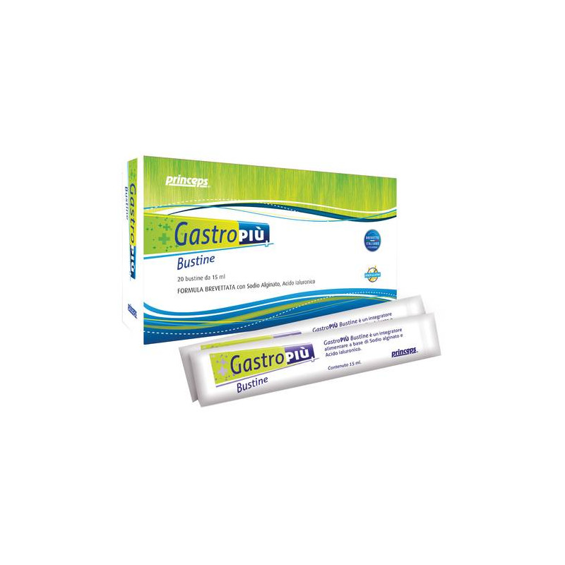 Sodio alginato: gli alginati sono polimeri polisaccaridici neutri isolati da alghe brune (Phacophycae) e sono classificati come fibra alimentare. Essi sono costituiti da una percentuale di acidi D-mannano L-glucuronico. In presenza di acido gastrico, gli alginati precipitano formando un gel, che tende formare una barriera galleggiante sull'imboccatura dello stomaco(2). Studi clinici hanno dimostrato che il pH della barriera composta dall'alginato è neutro, mentre il pH gastrico al di sotto della barriera è decisamente acido(2). Questi studi evidenziano che con la presenza di alginati si formi una barriera efficace contro l'acidità gastrica; evidenziano, inoltre, che si ha una rapida riduzione dei sintomi legati al reflusso esofageo (3, 4). Studi recenti hanno confermato l'efficacia degli alginati nel ridurre la sintomatologia legata al reflusso esofageo (5).