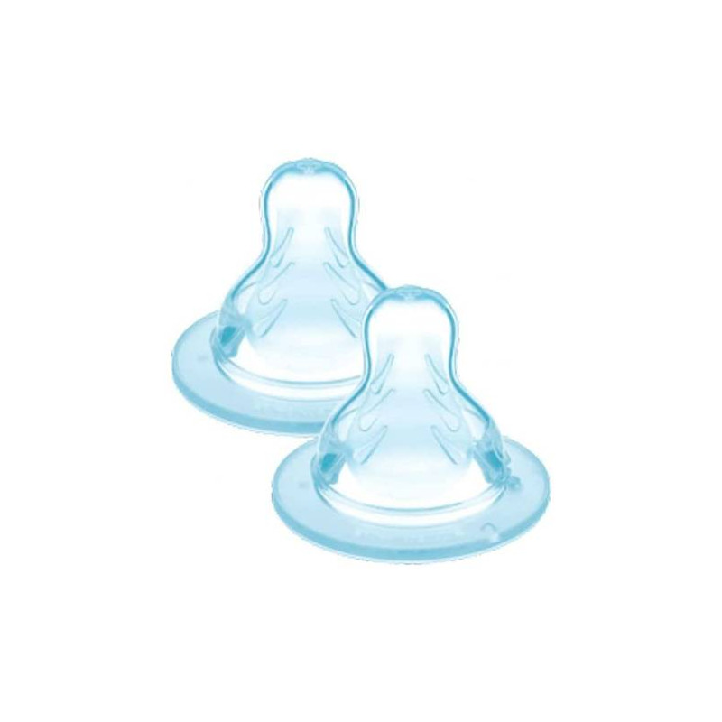 Caratteristiche: tettarella morbida con forma allargata ed allungata simile al seno materno con scannellature interne alla tettarella per impedire il collasso (blocco della stessa).