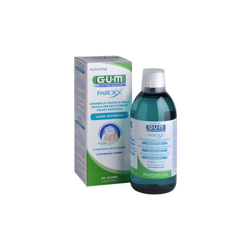 G•U•M PAROEX Collutorio per prevenire l’accumulo della placca dentale e garantire una protezione a lungo termine contro i problemi gengivali. Fornisce una protezione a lungo termine per problemi parodontali. Formula senza alcool dal gusto gradevole.