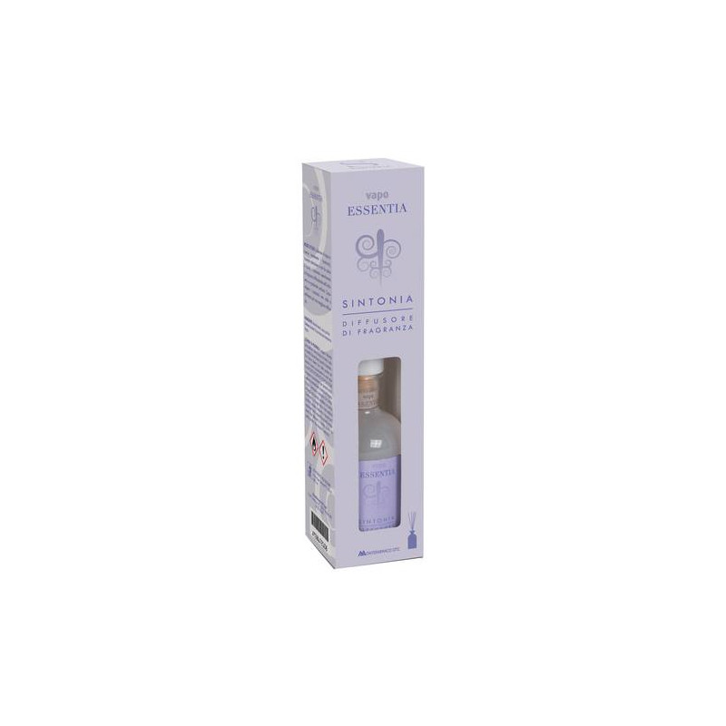 Vapo Essentia Sintonia è un mix di profumi che ricorda i colori dell'estate con i suoi frutti e i suoi fiori. Le note profumate di melone, cocomero, mela, limone e pompelmo si incontrano con quelle fiorite di violetta, magnolia e vetiver ricreando il ricordo frizzante e spensierato della bella stagione in buona compagnia.