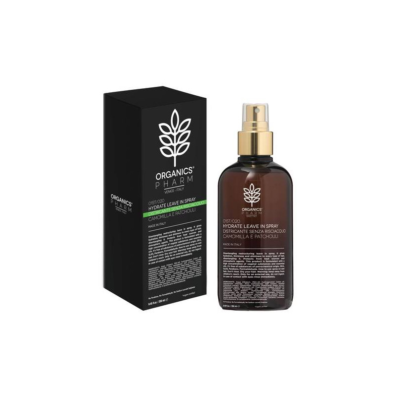 Spray senza risciaquo districante e idratante. Attribuisce idratazione, corpo e lucentezza a qualsiasi tipo di capello, districandolo. Protegge da fonti di calore ed agenti atmosferici. Prodotto con alta concentrazione di sostanze vegetali ed oli essenziali. Privo di sostanze di origine petrolchimica, DEA, SLES, parabeni, formaldeide.