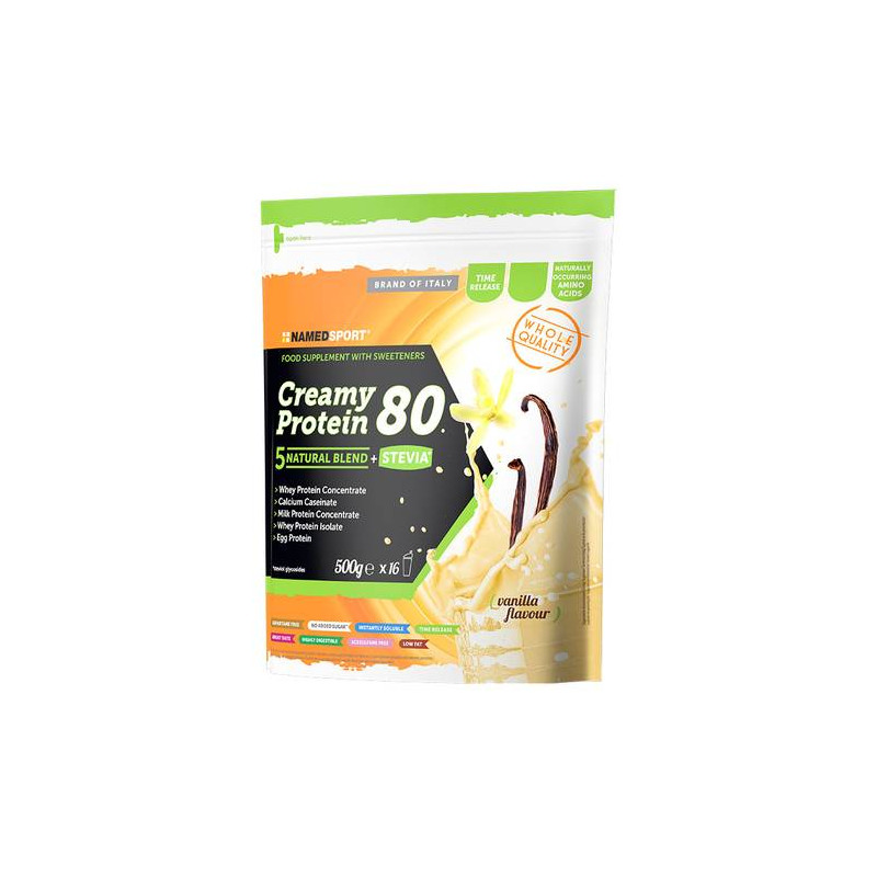 L’apporto di Aminoacidi ramificati naturalmente presenti aiuta inoltre a prevenire il catabolismo muscolare e, grazie a una straordinaria cremosità e a un elevato potere saziante della proteina, Creamy Protein 80 risulta un alleato ideale nelle diete a ridotto contenuto calorico. Con edulcorante naturale (glicosidi steviolici).