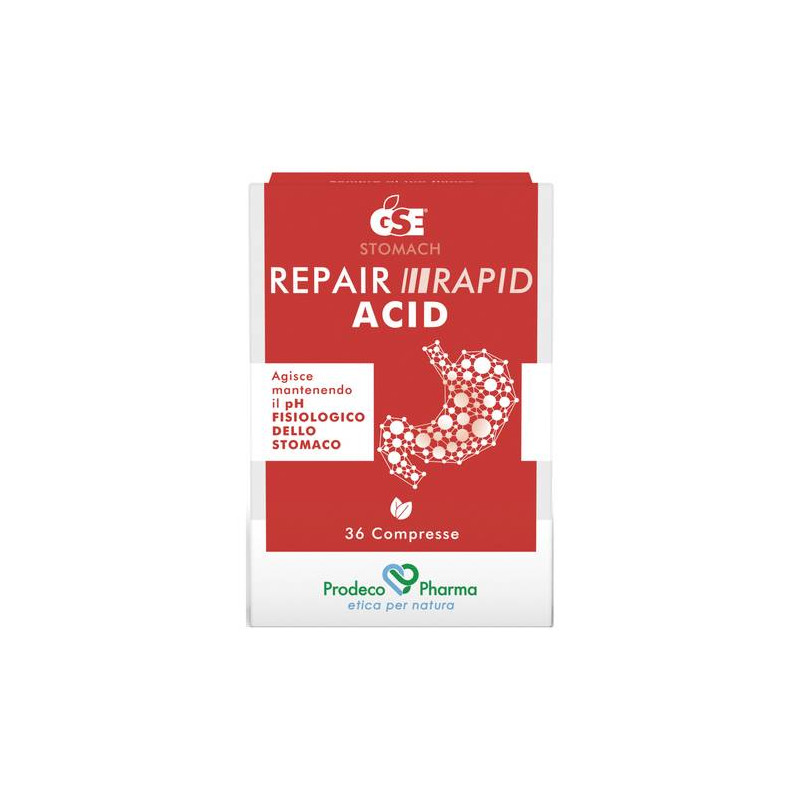 Grazie all’elevata concentrazione di polisaccaridi e mucillagini, naturalmente presenti negli estratti di alloro, salicaria e nel gel d’aloe vera, titolato in acemannano al 5%, GSE Repair Rapid Acid, in compresse deglutibili, forma sulla mucosa gastrica una barriera ad azione filmogena destinata a proteggere dal contatto con l’acidità dei succhi gastrici. GSE Repair Rapid Acid consente inoltre, il mantenimento dell’acidità dello stomaco a valori fisiologici, senza interferire con le normali funzionalità gastriche. L’effetto filmogeno protettivo del dispositivo medico, accompagnato dalla presenza della rutina e degli estratti di semi di pompelmo e centella, favorisce il ripristino delle condizioni fisiologiche ottimali della mucosa gastrica, coadiuvandone i processi riparativi. Completano il prodotto gli estratti di boswellia e passiflora dalle proprietà lenitive e calmanti.