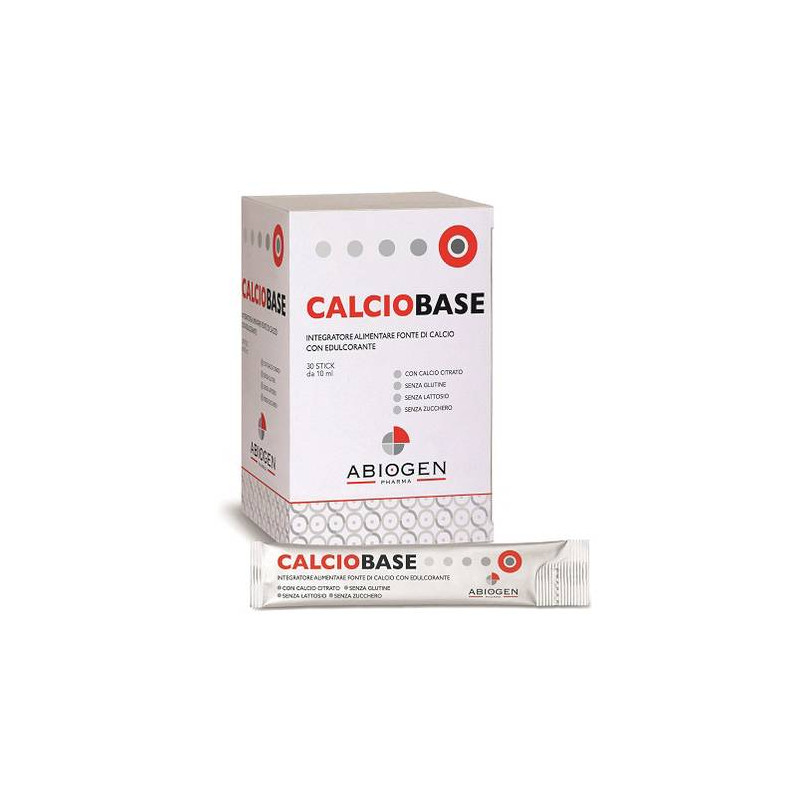 Il calcio di Calciobase è sotto forma di calcio citrato, che rappresenta una forma organica biodisponibile di questo importante minerale. Il calcio è necessario per il mantenimento di ossa normali e contribuisce alla regolare funzione muscolare.