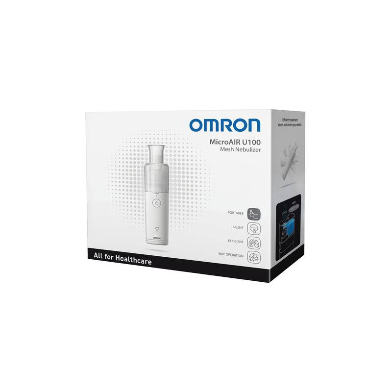 Il nuovo Omron MicroAIR U100 è un piccolo nebulizzatore portatile che permette al paziente di inalare il proprio medicinale ovunque, e in qualunque momento ne abbia necessità. La tecnologia mesh, unica nel suo genere, lo rende più efficiente e più agevole da utilizzare, rispetto ai nebulizzatori tradizionali. L'elevata silenziosità consente l'impiego con la massima discrezione, senza creare alcun disturbo alle altre persone.