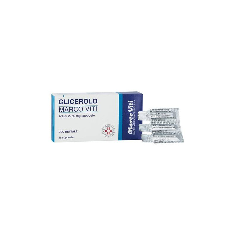 AVVERTENZE I lassativi devono essere usati il meno frequentemente possibile e per non piu' di sette giorni. L'uso per periodi di tempo maggiori richiede la prescrizione del medico dopo adeguata valutazione del singolo caso. Il trattamento della stitichezza cronica o ricorrente richiede sempre l'intervento del medico per la diagnosi, la prescrizione dei farmaci e la sorveglianza nel corso della terapia. E' inoltre opportuno che i soggetti anziani o in non buone condizioni di salute consultino il medico prima di usare il medicinale. L'abuso di lassativi puo' causare diarrea persistente con conseguente perdita di acqua, sali minerali (specialmente potassio) ed altri fattori nutritivi essenziali. Nei casi piu' gravi di abuso e' possibile l'insorgenza di disidratazione o ipopotassiemia, la quale puo' determinare disfunzioni cardiache o neuromuscolari, specialmente in caso di trattamento contemporaneo di glicosidi cardiaci, diuretici o corticosteroidi. L'abuso di lassativi, specialmente quelli di contatto (lassativi stimolanti), puo' causare dipendenza (e, quindi, possibile necessita' di aumentare progressivamente il dosaggio), stitichezza cronica e perdita delle normali funzioni intestinali (atonia intestinale). Negli episodi di stitichezza, si consiglia innanzitutto di correggere le abitudini alimentari integrando la dieta quotidiana con un adeguato apporto di fibre ed acqua. Quando si utilizzano lassativi e' opportuno bere al giorno almeno 6-8 bicchieri di acqua, o altri liquidi, in modo da favorire l'ammorbidimento delle feci. CATEGORIA FARMACOTERAPEUTICA Lassativi; clismi. CONSERVAZIONE Conservare nella confezione originale per proteggere il medicinale dalla luce. CONTROINDICAZIONI/EFF.SECONDAR Ipersensibilita' al principio attivo o ad uno qualsiasi degli eccipienti; dolore addominale acuto o di origine sconosciuta; nausea o vomito; ostruzione o stenosi intestinale; sanguinamento rettale di origine sconosciuta; crisi emorroidale acuta con dolore e sanguinamento; grave stato di disidratazione. DENOMINAZIONE GLICEROLO MARCO VITI SUPPOSTE ECCIPIENTI Sodio stearato; sodio carbonato anidro. EFFETTI INDESIDERATI Patologie gastrointestinali: dolori crampiformi isolati o coliche addominali e diarrea, con perdita di liquidi ed elettroliti, piu' frequenti nei casi di stitichezza grave, nonche' irritazione a livello rettale. GRAVIDANZA E ALLATTAMENTO Non sono stati effettuati studi adeguati e ben controllati sull'uso del medicinale in gravidanza o nell'allattamento. Anche se non ci sono evidenti controindicazioni dell'uso del medicinale in gravidanza e durante l'allattamenti, si raccomanda di assumere il medicinale solo in caso di necessita' e sotto controllo medico. INDICAZIONI Trattamento di breve durata della stitichezza occasionale. INTERAZIONI Non sono stati effettuati studi specifici di interazione. POSOLOGIA La dose corretta e' quella minima sufficiente a produrre una facile evacuazione. E' consigliabile usare inizialmente le dosi minime previste. Adulti e adolescenti (12-18 anni): 1 supposta per adulti al bisogno, per un massimo di 1 o 2 somministrazioni al giorno. Bambini di 2-11 anni: 1 supposta per bambini al bisogno, per un massimo di 1 o 2 somministrazioni al giorno. Bambini di 1 mese-2 anni: 1 supposta per la prima infanzia al bisogno, per un massimo di 1 o 2 somministrazioni al giorno. Togliere la supposta dal suo contenitore e poi, se necessario, inumidirla per facilitare l'introduzione rettale. Qualora le supposte apparissero rammollite immergere i contenitori, prima di aprirli, in acqua fredda. Nei bambini <12 anni il medicinale puo' essere utilizzato solo dopo aver consultato il medico. I lassativi devono essere usati il meno frequentemente possibile e per non piu' di sette giorni. Una dieta ricca di liquidi favorisce l'effetto del medicinale. PRINCIPI ATTIVI Glicerolo.