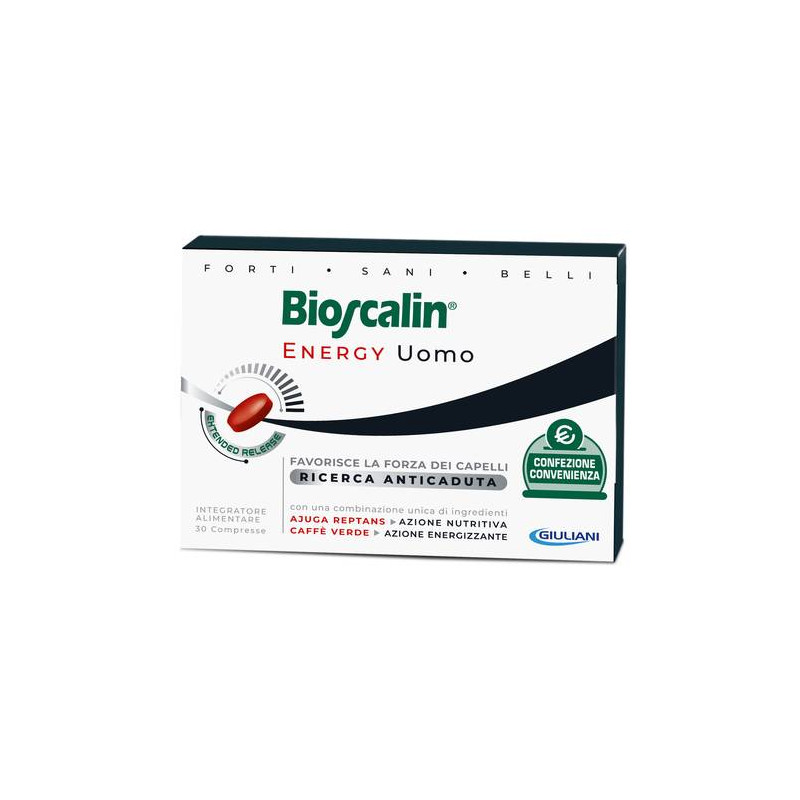 Integratore alimentare utile per i capelli dell'uomo, che associa l'azione combinata dei due esclusivi complessi ATP-3 e AJB-Complex, alla tecnologia brevettata R-Plus, in grado di veicolare in modo ottimale tutti gli attivi e massimizzare l'assorbimento, potenziandone l'azione sul capello.