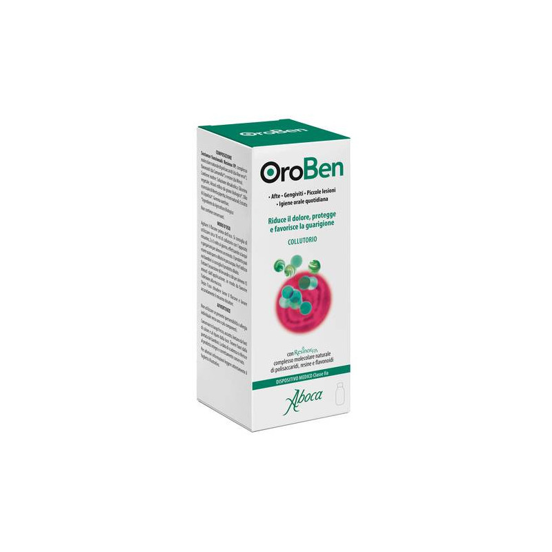 OroBen Collutorio agisce grazie a Resinox FP un complesso molecolare naturale frutto della Ricerca Aboca, composto da polisaccaridi, resine e flavonoidi che creano sulla mucosa una barriera attiva dalla duplice azione: