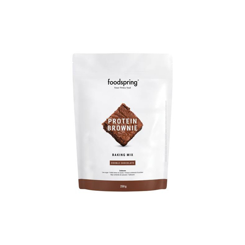Preparato secco per la preparazione di brownie al cioccolato proteico. Senza aromi artificiali. Con proteine del siero del latte da mucche allevate al pascolo. Ad alto contenuto di fibre. Con dolcificante.
