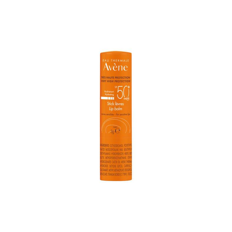 Octyldodecanol, Polyethylene, Butylene glycol cocoate, Hydrogenated microcrystalline wax, Bis-ethylhexyloxyphenol methoxyphenyl triazine, Diethylamino hydroxybenzoyl hexyl benzoate, Diethylhexyl butamido triazone, Butyl methoxydibenzoylmethane, Ethylhexyl salicylate, Beeswax (cera alba), Hydrogenated castor oil, Avene thermal spring water (Avene aqua), Aluminum hydroxide, Butylene glycol, Caprylic/capric triglyceride, Disodium stearoyl glutamate, Methyl methacrylate crosspolymer, Oxothiazolidine, Saccharin, Sodium benzoate, Titanium dioxide (CI 77891), Tocopheryl glucoside, Water (aqua).