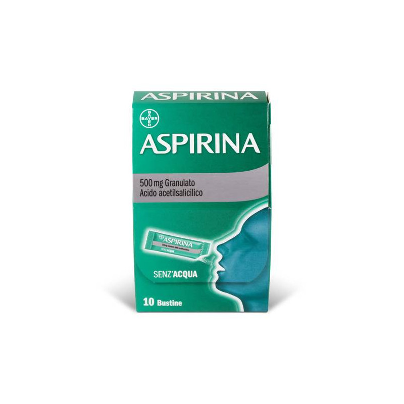Adulti: 1 o 2 bustine di granulato come dose singola, ripetendo, se necessario, la dose ad intervalli di 4-8 ore fino a 2-3 volte al giorno.Non superare mai il dosaggio massimo di 2 bustine 3 volte al giorno (max 6 bustine al di'). Aspirina 500 mg granulato puo' essere posta direttamente sulla lingua. Si dissolve con la saliva questo ne consente l'impiego senza acqua. L'uso del prodotto e' riservato ai soli pazientiadulti. Utilizzare sempre il dosaggio minimo efficace ed aumentarlo solo se non e' sufficiente ad alleviare i sintomi (dolore o febbre). Isoggetti maggiormente esposti al rischio di effetti indesiderati gravi, che possono usare il farmaco solo se prescritto dal medico, devono seguirne scrupolosamente le istruzioni (vedere paragrafo 4.4). Usare ilmedicinale per il periodo piu' breve possibile. Non assumere il prodotto per piu' di 3-5 giorni senza il parere del medico. Consultare il medico nel caso in cui i sintomi persistano. Assumere il medicinale preferibilmente dopo i pasti principali o, comunque, a stomaco pieno. Popolazioni speciali. Popolazione pediatrica: Aspirina 500 mg granulato non e' indicato per l'uso nella popolazione pediatrica (vedere paragrafo 4.4). Anziani: nei pazienti anziani utilizzare il dosaggio minimo efficace. Pazienti con compromissione della funzione epatica: l'acido acetilsalicilico deve essere usato con cautela nei pazienti con compromissione della funzione epatica (vedere paragrafo 4.4). Pazienti con compromissione della funzione renale: l'acido acetilsalicilico deve essere usato con cautela nei pazienti con compromissione della funzione renale (vedere paragrafo 4.4).