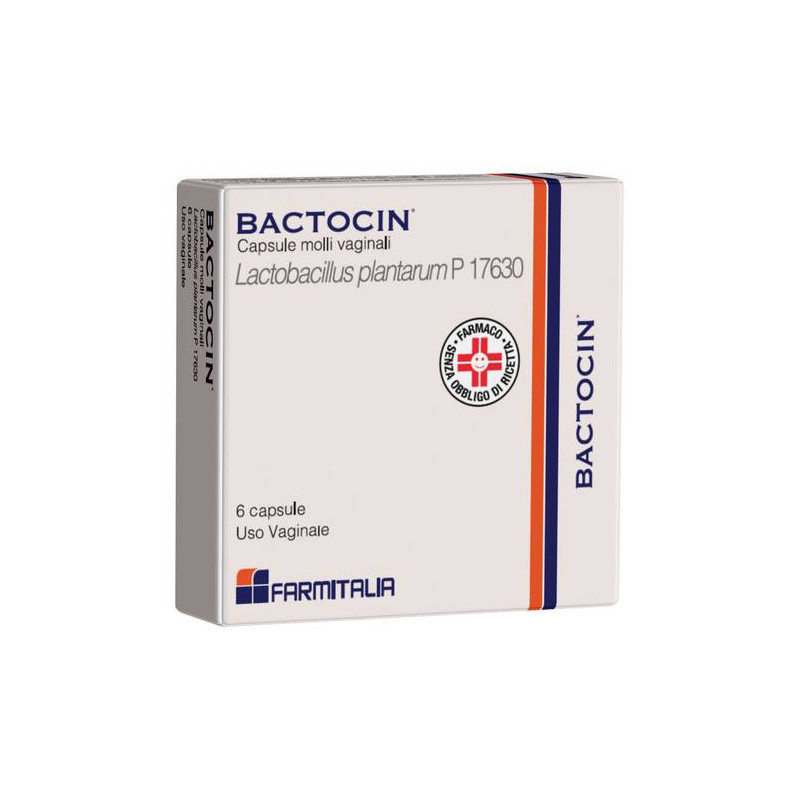 AVVERTENZE Bactocin non sostituisce la terapia antibiotica o chemioterapica, ma ne rappresenta un utile complemento ripristinando, specie al termine del trattamento specifico, le condizioni fisiologiche dell'ambiente vaginale. CATEGORIA FARMACOTERAPEUTICA Antimicrobici ed antisettici, escluse le associazioni con corticosteriodi. CONSERVAZIONE Conservare a temperatura tra 2 gradi C. e 8 gradi C. CONTROINDICAZIONI/EFF.SECONDAR Ipersensibilita' al principio attivo o ad uno qualsiasi degli eccipienti elencati al paragrafo 6.1. DENOMINAZIONE BACTOCIN CAPSULE MOLLI VAGINALI ECCIPIENTI Ogni capsula molle vaginale contiene: trigliceridi a media catena, silice (Aerosil 300), gelatina, glicerolo, dimetilpolisilossano, titaniobiossido (E 171). EFFETTI INDESIDERATI Non sono stati segnalati effetti indesiderati correlati all'uso del prodotto. Segnalazione delle reazioni avverse sospette. La segnalazionedelle reazioni avverse sospette che si verificano dopo l'autorizzazione del medicinale e' importante, in quanto permette un monitoraggio continuo del rapporto beneficio/rischio del medicinale. Agli operatori sanitari e' richiesto di segnalare qualsiasi reazione avversa sospetta tramite il sistema nazionale di segnalazione all'indirizzo www.agenziafarmaco.gov.it/content/come-segnalare-una-sospetta-reazione-avversa. GRAVIDANZA E ALLATTAMENTO II Lactobacillus plantarum e' ospite abituale non patogeno della vagina, pertanto Bactocin puo' essere utilizzato in gravidanza e/o durantel'allattamento. INDICAZIONI Bactocin capsule molli vaginali trovano indicazione nelle "vaginiti evulvo-vaginiti" in genere, in quanto i lattobacilli in esse presenti,impiantandosi e moltiplicandosi sulla mucosa vaginale, oltre a riportare all'equilibrio la flora batterica autoctona, antagonizzano, indirettamente per competizione, la colonizzazione da parte dei germi patogeni. Bactocin viene quindi utilizzato nella terapia topica delle infezioni vaginali sostenute da germi patogeni. In particolare in vaginiti associate ad insufficienza ovarica, leucorrea ipofollicolinica, vaginitiinfantili, vaginiti senili, pruriti vulvari, distrofi'a vaginale. Bactocin viene usato anche come coadiuvante nel trattamento chemioterapico ed antibiotico nelle vaginiti da Trichomonas. INTERAZIONI Non note. POSOLOGIA Posologia: una capsula vaginale al giorno. Modo di somministrazione: introdurre una capsula profondamente in vagina, in posizione supina, lasera prima di coricarsi. PRINCIPI ATTIVI Ogni capsula vaginale contiene, principio attivo: lactobacillus plantarum P 17630 nlt I0^8 UFC. Per l'elenco degli eccipienti vedere paragrafo 6.1.