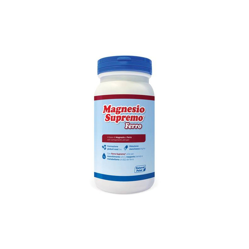 Magnesio supremo, formula originale ed esclusiva di Natural Point, è una miscela costituita da acido citrico di origine vegetale e magnesio carbonato di origine marina. La miscela in acqua si trasforma in una soluzione ad alto contenuto di magnesio citrato, sale organico altamente solubile con elevata velocità di assorbimento.
