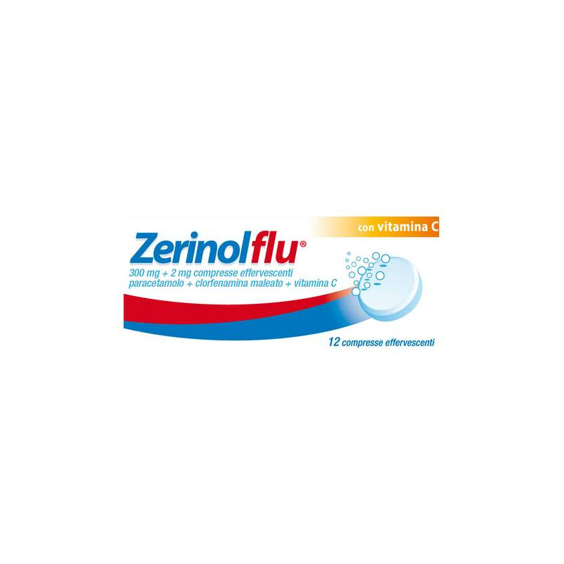 Il prodotto non deve essere assunto per periodi superiori a 3 giorni consecutivi senza valutazione medica. Se la febbre persiste per piu' ditre giorni oppure se i sintomi non migliorano e ne compaiono altri entro tre giorni oppure sono accompagnati da febbre elevata, esantema, quantita' eccessiva di muco e tosse persistente, e' necessaria la valutazione clinica prima di continuare la somministrazione. Paracetamolo:durante il trattamento con Zerinolflu controllare che non venga assunto contemporaneamente nessun altro medicinale contenente paracetamolo,poiche' se il paracetamolo e' assunto a dosi elevate si possono verificare gravi reazioni avverse. Invitare il paziente a contattare il medico prima di associare qualsiasi altro farmaco. Vedere anche il paragrafo 4.5. Dosi elevate o prolungate del prodotto possono provocare un'epatopatia ad alto rischio (vedere anche il paragrafo 4.9) ed alterazioni a carico del rene e del sangue anche gravi. Si puo' manifestare epatotossicita' con paracetamolo anche a dosi terapeutiche, dopo un trattamento di breve durata e in pazienti senza disfunzione epatica pre-esistente (vedere il paragrafo 4.8). In caso di reazioni di ipersensibilita' acuta al paracetamolo (ad es. shock anafilattico), il trattamento con Zerinolflu deve essere interrotto e devono essere attuate le misuremediche necessarie in base ai segni e ai sintomi. Severe reazioni avverse cutanee (SCAR): reazioni cutanee potenzialmente fatali quali sindrome di Stevens-Johnson (SJS), necrolisi epidermica tossica (TEN), pustolosi esantematica acuta generalizzata (AGEP), eruzione fissa da farmaci e dermatite esfoliativa sono state riportate con l'uso di Zerinolflu. I pazienti devono essere informati dei segni e dei sintomi e monitorati attentamente per le reazioni cutanee. Se si presentano sintomi osegni di SCAR (ad es. rash cutaneo progressivo spesso con vesciche olesioni della mucosa), i pazienti devono interrompere immediatamente il trattamento con Zerinolflu e consultare un medico. Si raccomanda cautela in pazienti con sensibilita' all'aspirina e/o ai farmaci antiinfiammatori non steroidei (FANS). Usare con cautela, dopo attenta valutazione clinica, in caso di alcolismo cronico, eccessiva assunzione di alcool (3 o piu' bevande alcoliche al giorno), anoressia, bulimia o cachessia, malnutrizione cronica (basse riserve di glutatione epatico) disidratazione, ipovolemia, insufficienza epatocellulare da lieve a moderata, sindrome di Gilbert, insufficienza renale grave,. Si consiglia cautela se il paracetamolo viene somministrato in concomitanza con flucloxacillina a causa dell'aumentato rischio di acidosi metabolica con gap anionico elevato (HAGMA), in particolare nei pazienti con grave compromissione renale, sepsi, malnutrizione e altre fonti di carenza di glutatione (ad es. alcolismo cronico), cosi' come in quelli che utilizzano le dosi massime giornaliere di paracetamolo. Si raccomanda un attento monitoraggio, inclusa la misurazione della 5-oxoprolina urinaria. Clorfenamina maleato: alle comuni dosi terapeutiche gli antistaminici presentano reazioni secondarie assai variabili da soggetto a soggetto eda composto a composto. L'effetto secondario piu' frequente e' la sedazione che puo' manifestarsi con sonnolenza; di cio' debbono essere avvertiti coloro che possono condurre autoveicoli o attendere ad operazioni che richiedono integrita' del grado di vigilanza (vedere paragrafo4.7). La clorfenamina, avendo anche un effetto anticolinergico, deveessere usata con cautela in caso di ipertensione grave o malattia cardiovascolare e tireotossicosi. I bambini e gli anziani hanno maggiori probabilita' di manifestare gli effetti anticolinergici neurologici. Gli individui che eseguono attivita' potenzialmente pericolose che richiedono vigilanza mentale o coordinamento fisico devono essere avvisatidi possibili sonnolenza, vertigini o debolezza (vedere paragrafi 4.7 e4.8). I pazienti devono anche essere avvertiti di evitare il consumodi bevande alcoliche mentre assumono antistaminici, poiche' l'alcol puo' potenziare questi effetti sul SNC (vedere paragrafo 4.5). Acido ascorbico: l'acido ascorbico (vitamina C) deve essere usato con cautela da soggetti che soffrono, o abbiano sofferto in passato, di nefrolitiasi (calcolosi renale) e da quelli affetti da deficit di G6PD (Glucosio-6-fosfato-deidrogenasi), emocromatosi, talassemia o anemia sideroblastica. Pazienti con insufficienza renale o epatica: somministrare con cautela nei soggetti con insufficienza renale o insufficienza epatica lieve-moderata. Anziani: particolare attenzione va posta nel determinarela dose negli anziani per la loro maggiore sensibilita' verso il farmaco. Nei pazienti anziani in trattamento con antistaminici si possonoverificare con maggiore probabilita' effetti quali vertigini, sedazione, confusione e ipotensione. I pazienti anziani sono particolarmente sensibili agli effetti secondari anticolinergici degli antistaminici quali secchezza della bocca e ritenzione urinaria (specialmente negli uomini). Zerinolflu compresse effervescenti contiene: 40 mg di aspartame(E 951) per dose (1 compressa effervescente). Aspartame ingerito oralmente e' idrolizzato nel tratto gastrointestinale. Fenilalanina e' ilprincipale prodotto della sua idrolisi. 212 mg di sorbitolo (E 420) per dose (1 compressa effervescente). L'effetto additivo della co-somministrazione di medicinali contenenti sorbitolo (o fruttosio) e l'assunzione giornaliera di sorbitolo (o fruttosio) con la dieta deve essere considerato. Il contenuto di sorbitolo in medicinali per uso orale puo'modificare la biodisponibilita' di altri medicinali per uso orale co-somministrati. Ai pazienti con intolleranza ereditaria al fruttosio non deve essere somministrato questo medicinale. Deve essere raccolta lastoria clinica dei pazienti con particolare attenzione ai sintomi diintolleranza ereditaria al fruttosio prima di somministrare questo medicinale. 341 mg (14,83 mmol) di sodio per dose (1 compressa effervesc