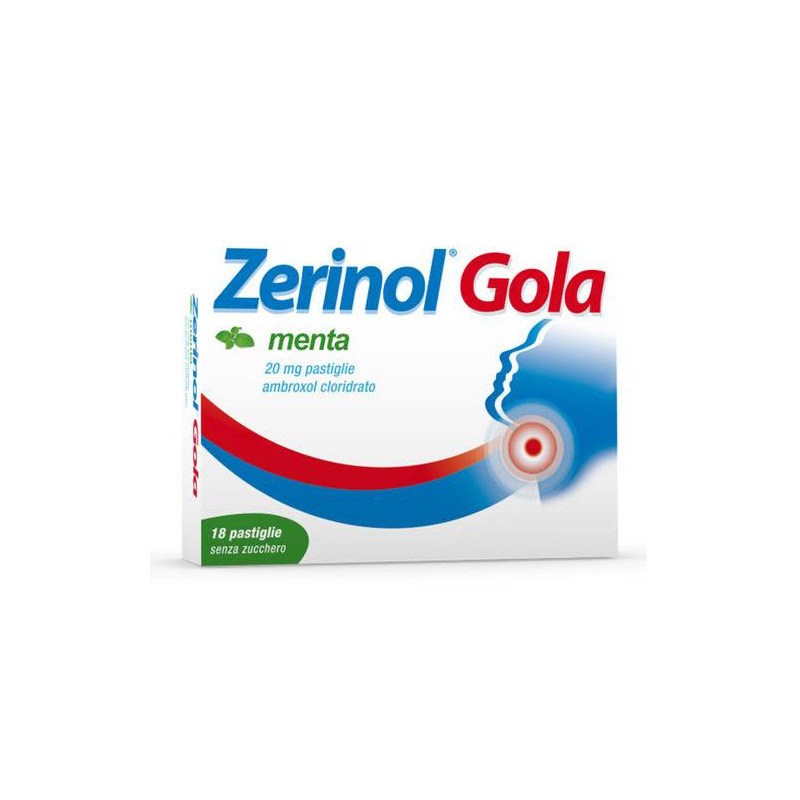 AVVERTENZE Sono stati segnalati casi di reazioni cutanee gravi quali eritema multiforme, sindrome di Stevens-Johnson (SJS)/necrolisi epidermica tossica(TEN) e pustolosi esantematica acuta generalizzata (AGEP) associati alla somministrazione di ambroxolo cloridrato. Se sono presenti sintomio segni di rash cutaneo progressivo (talvolta associato a vesciche olesioni della mucosa), il trattamento con ambroxolo cloridrato deve essere interrotto immediatamente e deve essere consultato un medico. Episodi di dispnea si possono verificare in un contesto di malattia latente (come per esempio la gola gonfia). Anche reazioni allergiche locali(vedere paragrafo 4.8: angioedema) possono anche essere causa di dispnea. Le proprieta' anestetiche locali di ambroxolo possono alterare lapercezione sensoriale a livello dello spazio faringeo (vedere paragrafo 4.8: ipoestesia del cavo orale e della faringe). Zerinol Gola menta20 mg pastiglie non e' adatto per il trattamento delle ulcere del cavo orale. In questi casi rivolgersi al medico. In caso di funzionalita'renale compromessa o di grave epatopatia, Zerinol Gola menta 20 mg pastiglie puo' essere utilizzato solo dopo aver consultato il medico. Come per ogni medicinale con metabolismo epatico seguito da eliminazionerenale, in caso di insufficienza renale grave, puo' verificarsi l'accumulo di metaboliti di ambroxolo nel fegato. Questo medicinale contiene 1,37 g di sorbitolo in ogni pastiglia. Ai pazienti con intolleranzaereditaria al fruttosio (HFI) non deve essere somministrato questo medicinale. Il sorbitolo puo' causare problemi gastrointestinali e avereun lieve effetto lassativo. Una pastiglia di Zerinol Gola menta 20 mgpastiglie contiene meno di 1 mg di lattosio. I pazienti affetti da rari problemi ereditari di intolleranza al galattosio, da deficit totaledi lattasi, o da malassorbimento di glucosio-galattosio, non devono assumere questo medicinale. Questo medicinale contiene meno di 1 mmol (23 mg) di sodio per pastiglia, cioe' essenzialmente "senza sodio". Popolazione pediatrica. Zerinol Gola menta 20 mg pastiglie non deve essereusato in bambini di eta' inferiore a 12 anni. CATEGORIA FARMACOTERAPEUTICA Preparati per il cavo faringeo (anestetici locali). CONSERVAZIONE Non conservare a temperatura superiore a 30 gradi C. CONTROINDICAZIONI/EFF.SECONDAR Ipersensibilita' al principio attivo o ad uno qualsiasi degli eccipienti elencati al paragrafo 6.1. DENOMINAZIONE ZERINOL GOLA MENTA 20 MG PASTIGLIE ECCIPIENTI Aroma menta (gomma arabica, olio di menta cinese, maltodestrine, lattosio-monoidrato), sorbitolo (E420), saccarina sodica, macrogol 6000, talco. EFFETTI INDESIDERATI Frequenza stimata sulla base dei dati clinici disponibili: molto comune (>= 1/10); comune (>= 1/100 e < 1/10); non comune (>= 1/1.000 e < 1/100); raro (>= 1/10.000 e < 1/1.000); molto raro (< 1/10.000); non nota (non puo' essere definita sulla base dei dati disponibili). Questa reazione avversa e' stata osservata nell'esperienza post-marketing. Conuna certezza del 95%, la categoria di frequenza non e' maggiore di non comune (3/1226), ma potrebbe essere inferiore. Non e' possibile unastima precisa della frequenza, poiche' la reazione avversa al farmaconon si e' verificata in un database di studi clinici composto da 1226pazienti.). Disturbi del sistema immunitario. Raro: reazioni di ipersensibilita'; non nota: reazioni anafilattiche, tra cui shock anafilattico, angioedema e prurito. Patologie della cute e del tessuto sottocutaneo. Raro: eruzione cutanea, orticaria; non nota: reazioni avverse cutanee gravi (tra cui eritema multiforme, sindrome di Stevens-Johnson/necrolisi epidermica tossica e pustolosi esantematica acuta generalizzata). Come generalmente si osserva per le allergie, la gravita' delle reazioni allergiche puo' aumentare se il paziente assume nuovamente la stessa sostanza (vedere paragrafo 4.3). Patologie del sistema nervoso.Comune: disgeusia (p.es. gusto alterato). Patologie gastrointestinalie patologie respiratorie, toraciche e mediastiniche. Comune: ipoestesia orale e della faringe (vedere paragrafo 4.4), nausea; non comune: diarrea, dolore addominale superiore, dispepsia, bocca secca; raro: golasecca; non nota: vomito. Segnalazione delle reazioni avverse sospette. La segnalazione delle reazioni avverse sospette che si verificano dopo l'autorizzazione del medicinale e' importante, in quanto permette un monitoraggio continuo del rapporto beneficio/rischio del medicinale.Agli operatori sanitari e' richiesto di segnalare qualsiasi reazioneavversa sospetta tramite il sistema nazionale di segnalazione all'indirizzo https://www.aifa.gov.it/content/segnalazioni-reazioni- avverse. GRAVIDANZA E ALLATTAMENTO Gravidanza. Ambroxolo cloridrato attraversa la barriera placentare. Studi preclinici non hanno dimostrato alcun effetto nocivo diretto o indiretto sulla gravidanza, sullo sviluppo embrionale/fetale, sul parto osulla crescita postnatale. Una vasta esperienza clinica dopo la ventottesima settimana di gravidanza, non ha evidenziato la comparsa di effetti dannosi sul feto. Nonostante cio', devono essere adottate le normali precauzioni sull'uso di medicinali in gravidanza. Specialmente durante il primo trimestre, l'uso di Zerinol Gola menta 20 mg pastiglie non e' consigliato. Allattamento. Gli studi sugli animali hanno mostrato che ambroxolo cloridrato viene escreto nel latte materno. Anche se non sono attesi effetti indesiderati sui lattanti, l'uso di Zerinol Gola menta 20 mg pastiglie non e' raccomandato nelle madri che allattanoal seno. Fertilita'. Non sono disponibili dati clinici sulla fertilita' per ambroxolo. Studi preclinici non indicano effetti nocivi direttio indiretti riguardanti la fertilita'. INDICAZIONI Trattamento sintomatico del dolore acuto nel mal di gola. INTERAZIONI Non e' nota alcuna interazione sfavorevole clinicamente rilevante conaltri farmaci. POSOLOGIA Posologia. Adulti e bambini sopra i 12 anni: fino a 6 pastiglie al giorno, da sciogliere in bocca. Zerinol Gola