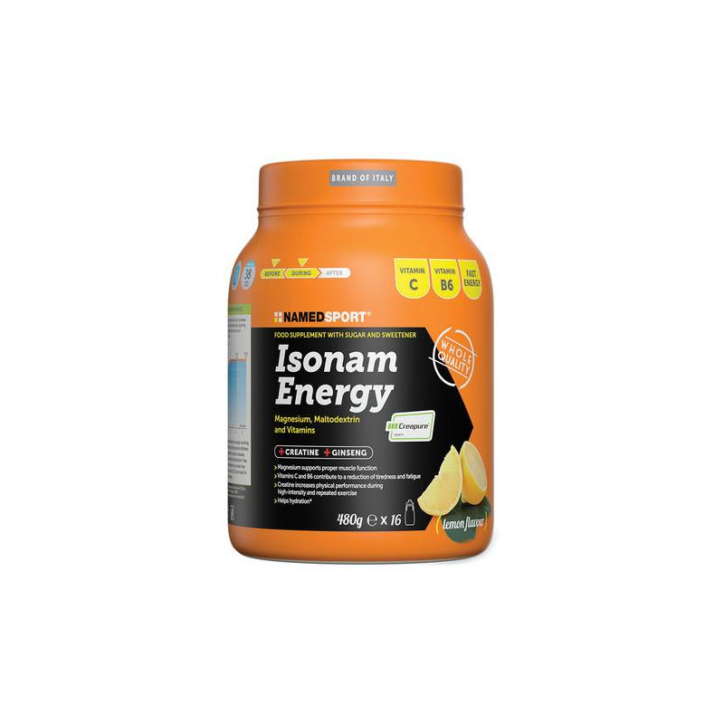 Integratore alimentare in polvere a base di carboidrati semplici e complessi con magnesio, vitamina C, vitamina B6, creatina ed estratto di ginseng.