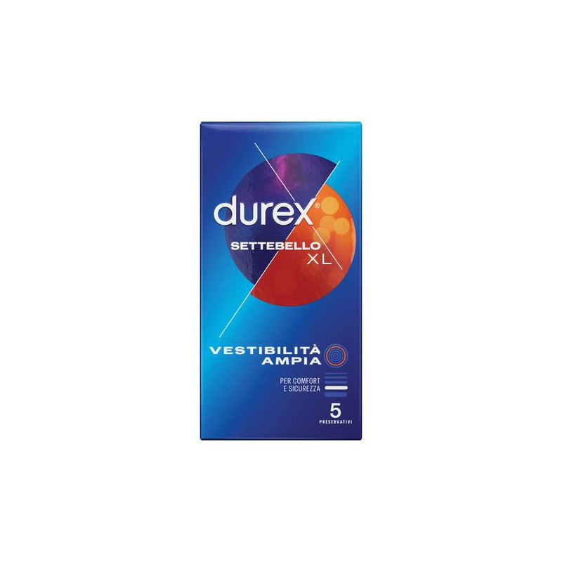 I preservativi Durex Settebello XL sono adatti per il comfort di coloro che preferiscono una taglia più larga rispetto ai normali preservativi in lattice Durex.