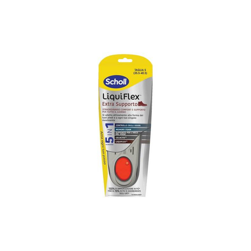 Inserire le solette Scholl LiquiFlex con la capsula LiquiFlex rivolta verso il basso. La soletta dovrebbe essere piatta. Può essere necessario tagliarla ulteriormente per adattarla al meglio alla scarpa.
