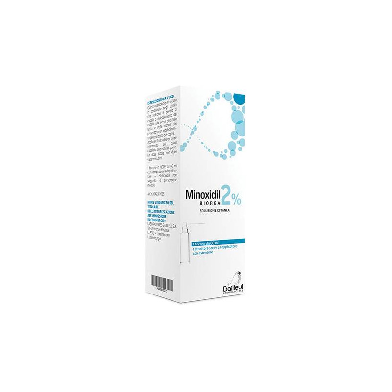 AVVERTENZE I pazienti con patologia cardiovascolare o aritmia cardiaca nota devono consultare un medico prima di utilizzare Minoxidil Biorga 2%, soluzione cutanea Minoxidil Biorga 2%, soluzione cutanea non e' indicata inassenza di familiarita' per perdita di capelli, perdita di capelli improvvisa e/o a chiazze, perdita di capelli dovuta al parto o quando lacausa della perdita dei capelli non e' nota. Minoxidil Biorga 2%, soluzione cutanea deve essere applicata soltanto su un cuoio capelluto normale e sano. Non utilizzare se il cuoio capelluto e' rosso, infiammato, infetto, irritato o dolente o se si utilizzano altri medicinali sulcuoio capelluto. Alcuni eccipienti di Minoxidil Biorga 2%, soluzione cutanea possono causare bruciore e irritazione. In caso di contatto accidentale con superfici sensibili (occhi, pelle abrasa e membrane mucose), la zona deve essere lavata con abbondante quantita' di acqua di rubinetto fresca. Si deve evitare di inalare lo spray. Non ingerire. Ilpaziente deve smettere di usare Minoxidil Biorga 2%, soluzione cutaneae consultare il medico se rileva ipotensione o manifesta un dolore toracico, un'accelerazione del battito cardiaco, svenimento o capogiro,aumento ponderale improvviso, rigonfiamento delle mani o dei piedi e arrossamento o irritazione persistenti del cuoio capelluto. Alcuni pazienti hanno manifestato alterazioni del colore e/o della consistenza dei capelli con l'uso di Minoxidil Biorga 2%, soluzione cutanea. Popolazione pediatrica: l'ingestione accidentale puo' causare eventi avversicardiaci gravi. Pertanto, Minoxidil Biorga 2%, soluzione cutanea deveessere tenuta fuori dalla portata dei bambini. CATEGORIA FARMACOTERAPEUTICA Agenti dermatologici. CONSERVAZIONE Prodotto infiammabile. Proteggere dal calore. Tenere il contenitore ben chiuso. CONTROINDICAZIONI/EFF.SECONDAR Ipersensibilita' al principio attivo o ad uno qualsiasi degli eccipienti elencati al paragrafo 6.1. Minoxidil Biorga 2%, soluzione cutanea non e' indicata nei casi di alopecia areata (perdita dei capelli improvvisa o inspiegabile) o alopecia cicatriziale (associata a una cute concaratteristiche di cicatrizzazione, come un'ustione o un'ulcera). Inoltre, Minoxidil Biorga 2%, soluzione cutanea non deve essere utilizzata se la perdita dei capelli e' associata a gravidanza, parto o patologie gravi, come malfunzionamento della tiroide, lupus, perdita di sezioni di capelli associata a infiammazione del cuoio capelluto o altre patologie. DENOMINAZIONE MINOXIDIL BIORGA 2% SOLUZIONE CUTANEA ECCIPIENTI Glicole propilenico, etanolo 96%, acqua depurata. EFFETTI INDESIDERATI La frequenza delle reazioni avverse alla soluzione di minoxidil per uso topico e' definita in base alla seguente convenzione: molto comune (>= 1/10), comune (>= 1/100, < 1/10), non comune (>= 1/1.000, < 1/100),raro (>= 1/10.000, <1/1.000), molto raro (< 1/10.000), non nota (la frequenza non puo' essere definita sulla base dei dati disponibili). Iseguenti eventi avversi sono stati associati all'uso di soluzioni a base di minoxidil (associati al 2% e 5%) in soggetti di ambo i sessi, con un'incidenza maggiore dell'1% e superiore rispetto agli studi clinici controllati con placebo. Disturbi psichiatrici. Comune: depressione.Patologie del sistema nervoso. Molto comune: cefalea. Patologie respiratorie, toraciche e mediastiniche. Comune: dispnea. Patologie della cute e del tessuto sottocutaneo. Comune: prurito, ipertricosi, eruzionecutanea, eruzione cutanea acneiforme, dermatite, disturbo cutaneo infiammatorio. Patologie del sistema muscoloscheletrico e del tessuto connettivo. Comune: dolore muscoloscheletrico. Patologie sistemiche e condizioni relative alla sede di somministrazione. Comune: edema periferico. Varie. Comune: dolore. I seguenti eventi avversi sono stati associati all'uso di soluzioni topiche a base di minoxidil durante il periodo postcommercializzazione. Disturbi del sistema immunitario. Frequenzanon nota: reazioni allergiche, incluso l'angioedema. Patologie del sistema nervoso. Raro: cefalea. Patologie cardiovascolari. Raro: palpitazioni, aumento della frequenza cardiaca, dolore toracico; molto raro:ipotensione. Patologie della cute e del tessuto sottocutaneo. Non comune: secchezza cutanea, esfoliazione cutanea, eruzione cutanea, perditatemporanea di capelli, ipertricosi, alterazioni della consistenza delcapello, alterazioni del colore del capello; raro: dermatite da contatto. Patologie sistemiche e condizioni relative alla sede di somministrazione. Non comune: prurito alla sede di applicazione, irritazione alla sede di applicazione; raro: eritema alla sede di applicazione. Segnalazione delle reazioni avverse sospette. La segnalazione delle reazioni avverse sospette che si verificano dopo l'autorizzazione del medicinale e' importante, in quanto permette un monitoraggio continuo del rapporto beneficio/rischio del medicinale. Agli operatori sanitari e' richiesto di segnalare qualsiasi reazione avversa sospetta tramite il sistema nazionale di segnalazione all'indirizzo https://www.aifa.gov.it/content/segnalazioni-reazioni-avverse. GRAVIDANZA E ALLATTAMENTO Gravidanza: non sono stati effettuati finora studi adeguati e ben controllati nelle donne in gravidanza. Gli studi condotti sugli animali hanno fatto emergere un rischio per il feto a livelli di esposizione chesono molto elevati rispetto a quelli destinati all'esposizione nell'uomo. Nell'uomo e' possibile, sebbene remoto, un basso rischio di dannofetale (vedere paragrafo 5.3 Dati preclinici di sicurezza). Allattamento: il minoxidil assorbito per via sistemica e' escreto nel latte materno. Il minoxidil per via topica deve essere utilizzato durante la gravidanza o l'allattamento soltanto se il beneficio per la madre superiil potenziale rischio per il feto o il lattante. INDICAZIONI Minoxidil Biorga 2%, soluzione cutanea e' indicata per il trattamentodell'alopecia. Minoxidil Biorga 2%, soluzione cutanea e' indicata in particolare negli uomini che soffrono di perdita di capell
