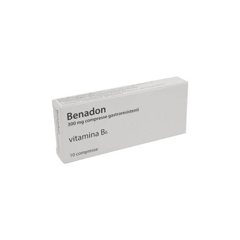 AVVERTENZE La vitamina B6 non deve essere assunta a dosi superiori a quelle raccomandate, ne' per periodi piu' prolungati. A dosi giornaliere di 300 mg o superiori la vitamina B6 non deve essere assunta per piu' di 5 mesi. Dopo 5 mesi di trattamento e' necessaria una sospensione di almeno 25 giorni. Se non ci si attiene a queste raccomandazioni puo' manifestarsi grave neurotossicita'. Particolare cautela occorre osservare nei pazienti parkinsoniani contemporaneamente trattati con L-dopa, poiche' la vitamina B 6 ad alte dosi puo' antagonizzarne gli effetti. CATEGORIA FARMACOTERAPEUTICA Vitamine. CONSERVAZIONE Questo medicinale non richiede alcuna condizione particolare di conservazione. CONTROINDICAZIONI/EFF.SECONDAR Ipersensibilita' al principio attivo o ad uno qualsiasi degli eccipienti; gravidanza e allattamento; bambini al di sotto dei 12 anni; pazienti con insufficienza renale o epatica. DENOMINAZIONE BENADON 300 MG COMPRESSE GASTRORESISTENTI ECCIPIENTI Povidone K90, talco, magnesio stearato, acido metacrilico-etile acrilato copolimero (1:1), carmellosa sodica, macrogol 6000. EFFETTI INDESIDERATI Le reazioni avverse elencate sotto derivano da segnalazioni spontanee, poiche' queste reazioni sono segnalate su base volontaria non e' possibile stimarne la frequenza. Patologie gastrointestinali: nausea, vomito. Disturbi del sistema immunitario: in soggetti predisposti possono manifestarsi reazioni di ipersensibilita'. Patologie del sistema nervoso: neuropatia periferica e polineuropatia, parestesia. Patologie della cute e del tessuto sottocutaneo: reazioni di fotosensibilita', eruzione cutanea, prurito, orticaria e dermatite bollosa. La segnalazione delle reazioni avverse sospette che si verificano dopo l'autorizzazione del medicinale e' importante, in quanto permette un monitoraggio continuo del rapporto beneficio/rischio del medicinale. GRAVIDANZA E ALLATTAMENTO Il prodotto e' controindicato durante la gravidanza e l'allattamento; le donne in eta' fertile devono usare metodi contraccettivi efficaci durante il trattamento. INDICAZIONI Terapia e profilassi delle carenze di vitamina B 6 (malnutrizione, etilismo, ecc.); trattamento e profilassi delle nevriti in caso di terapia con isoniazide, idralazina, penicillamina, cicloserina; anemie piridossino-sensibili; terapia coadiuvante in corso di radioterapia. INTERAZIONI Diversi farmaci interferiscono con la vitamina B6 e possono diminuirne i livelli plasmatici, fra questi: cicloserina, idralazina, isoniazide, desossipiridossina, d-penicillamina, contraccettivi orali, alcol. La vitamina B6 potrebbe ridurre l'efficacia dei farmaci. L-Dopa: questa interazione non si verifica quando la carbidopa e' utilizzata assieme alla Levodopa; altretamine, fenobarbital, fenitoina. Amiodarone: la somministrazione concomitante di Vitamina B6 potrebbe esacerbare la fotosensibilita' indotta dall'amiodarone. Interazioni con esami di laboratorio. Urobilinogeno: la piridossina puo' causare un falso positivo nel test con il reagente di Ehrlich. POSOLOGIA Il medicinale e' indicato per adulti e adolescenti a partire dai 12 anni di eta'. Una compressa al giorno per via orale, attenendosi alle indicazioni del medico. Nelle convulsioni e nelle anemie piridossino-sensibili, in alcuni pazienti possono essere necessarie dosi piu' elevate (600 mg al giorno o piu'). Per l'elevato dosaggio di vitamina B6, che supera ampiamente il dosaggio alimentare raccomandato, il prodotto non e' indicato per l'uso in gravidanza e allattamento e nei pazienti con insufficienza renale ed epatica. A dosi giornaliere di 300 mg o superiori la vitamina B6 non deve essere assunta per piu' di 5 mesi. Dopo 5 mesi di trattamento e' necessaria una sospensione di almeno 25 giorni. Via di somministrazione: orale. Le compresse non devono essere masticate e devono essere inghiottite con una sufficiente quantita' di acqua. PRINCIPI ATTIVI Piridossina cloridrato(vitamina B6).