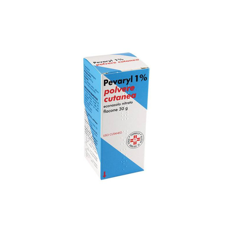 Pevaryl 1% crema, 100 g di crema contengono; principio attivo: econazolo nitrato 1,0 g. Eccipienti con effetti noti: idrossianisolo butilatoe acido benzoico. Pevaryl 1% spray cutaneo, soluzione alcolica, 100 gdi soluzione cutanea alcolica contengono; principio attivo: econazolonitrato 1,0 g. Eccipienti con effetti noti: etanolo, glicole propilenico e profumo. Pevaryl 1% polvere cutanea, 100 g di polvere cutanea contengono; principio attivo: econazolo nitrato 1,0 g. Eccipiente con effetti noti: profumo. Pevaryl 1% emulsione cutanea, 100 g di emulsionecutanea contengono; principio attivo: econazolo nitrato 1,0 g. Eccipienti con effetti noti: idrossianisolo butilato, acido benzoico e profumo. Per l'elenco completo degli eccipienti, vedere paragrafo 6.1.