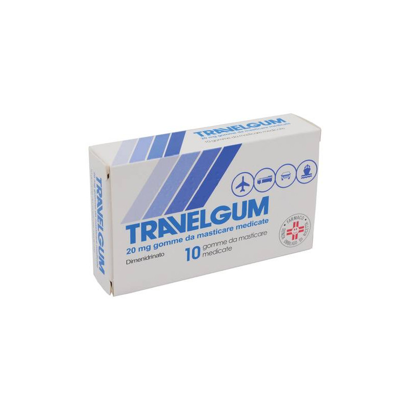 AVVERTENZE Non deglutire mai le gomme da masticare Travelgum. Nei soggetti diabetici considerare che una gomma da masticare contiene circa 500 mg di glucosio e saccarosio. Usare con cautela in soggetti affetti da glaucoma, ipertrofia prostatica, altre sindromi di ritenzione urinaria, ostruzione intestinale, asma bronchiale, epilessia. Tenere il medicinale fuori dalla portata dei bambini. Travelgum contiene: - 3 mg di aspartame(E 951) per gomma da masticare; - meno di 1 mmol (23 mg) di sodio pergomma da masticare, cioe' essenzialmente "senza sodio". - 285 mg di sorbitolo (E 420) per gomma da masticare. Ai pazienti con intolleranza ereditaria al fruttosio non deve essere somministrato questo medicinale; - saccarosio : i pazienti affetti da rari problemi ereditari di intolleranza al fruttosio, da malassorbimento di glucosio-galattosio, o dainsufficienza di sucrasi isomaltasi, non devono assumere questo medicinale; - glucosio e lattosio : i pazienti affetti da rari problemi ereditari di intolleranza al galattosio, da deficit totale di lattasi, oda malassorbimento di glucosio-galattosio, non devono assumere questomedicinale. CONSERVAZIONE Non conservare a temperatura superiore ai 25.C. CONTROINDICAZIONI/EFF.SECONDAR Ipersensibilita' gia' nota verso il componente o verso altri antistaminici. Fenilchetonuria. Gravidanza. Non se ne consiglia l'uso in neonati e prematuri, nonche' durante l'allattamento. DENOMINAZIONE TRAVELGUM ECCIPIENTI Silice colloidale anidra, Destrina, Sorbitolo (E 420), Talco, Magnesiostearato, Magnesio ossido leggero, Glucosio liquido, Macrogol 35000,Titanio diossido (E 171), Calcio carbonato, Saccarina sodica, Aspartame (E 951), Povidone 25, Saccarosio, Levomentolo, Aroma menta naturale(contenente anche lattosio), Gliceridi semisintetici solidi, Cera bianca, Acido metacrilico - metile metacrilato copolimero (1:2) (EudragitS 12.5 ed Eudragit S 100), Potassio fosfato monobasico, Cera montana,Base per gomma da masticare, Dimetilaminoetil - metilmetacrilato metil- butil metacrilato copolimero (Eudragit E 12.5). EFFETTI INDESIDERATI Con l'impiego degli antistaminici possono verificarsi sonnolenza, secchezza delle fauci, fotosensibilita', disturbi dell'accomodazione, disturbi della minzione, cefalee, anoressia, nausea, reazioni cutanee su base allergica. Meno frequentemente vertigini, astenia, insonnia (specialmente nei bambini), euforia, tremori, ipotensione, tachicardia. Segnalazione delle reazioni avverse sospette La segnalazione delle reazioni avverse sospette che si verificano dopo l'autorizzazione del medicinale e' importante, in quanto permette un monitoraggio continuo del rapporto beneficio/rischio del medicinale. Agli operatori sanitari e' richiesto di segnalare qualsiasi reazione avversa sospetta tramite il sistema nazionale di segnalazione all'indirizzo https://www.aifa.gov.it/content/segnalazioni-reazioni-avverse. GRAVIDANZA E ALLATTAMENTO Usare solo in caso di effettiva necessita' e sotto il diretto controllo del medico. INDICAZIONI Cinetosi (nausea e vomito durante i viaggi in auto, treno, aereo e nave). INTERAZIONI Durante il trattamento con Travelgum e' opportuno evitare l'uso contemporaneo di bevande alcoliche e di farmaci ipnotici, sedativi o tranquillanti, allo scopo di impedire eventuali fenomeni additivi di sedazione. L'uso di antistaminici contemporaneamente a certi antibiotici ototossici puo' mascherare i primi segni di ototossicita', la quale puo' rivelarsi solo quando il danno e' irreversibile. POSOLOGIA Adulti e bambini (di eta' compresa tra i 4 e i 12 anni): iniziare a masticare 1 gomma ai primi sintomi di nausea. L'effetto si avverte dopo2-3 minuti; per raggiungere la massima efficacia continuare a masticare per 5-10 minuti. L'effetto dura a seconda della situazione e del paziente da 1 a 3 ore. Adulti: attenuandosi l'effetto o perdurando la situazione di disagio e' possibile ripetere la somministrazione dopo 3-4ore, fino ad un massimo di 4 gomme da masticare medicate al giorno. Bambini: ripetere non piu' di due volte al giorno. Non superare le dosiconsigliate. Le persone particolarmente sensibili alla cinetosi usinoTRAVELGUM 20 mg gomme da masticare medicate prima di situazioni particolari quali: strade tortuose, turbolenze durante il volo, cattivo tempo durante i viaggi in mare ecc. In questo modo si possono evitare anche i primi sintomi di malessere. Travelgum 20 mg gomme da masticare medicate sono al gradevole sapore di menta piperita; non devono essere ingoiati, poiche' in tal caso la nausea iniziale aumenterebbe ulteriormente. PRINCIPI ATTIVI Ogni gomma da masticare medicata contiene: Principio attivo: Dimenidrinato mg 20. Eccipienti con effetti noti: aspartame (E 951), sorbitolo(E 420), saccarosio, glucosio e lattosio.