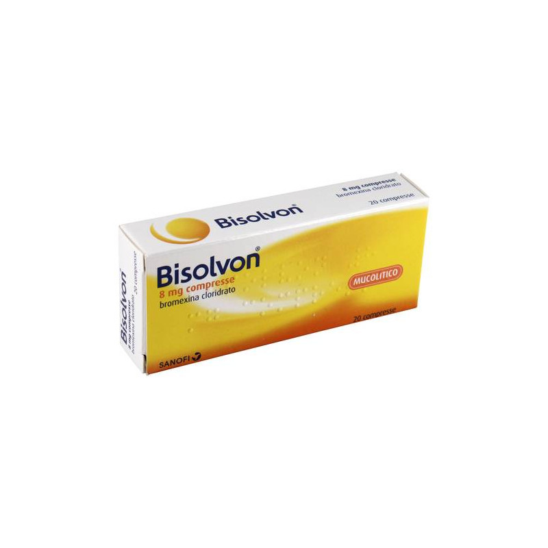 AVVERTENZE Il trattamento con Bisolvon comporta un aumento della secrezione bronchiale (questo favorisce l'espettorazione). Non usare per trattamenti protratti. Nel trattamento di condizioni respiratorie acute, consultare il medico se i sintomi non migliorano o peggiorano nel corso della terapia. Le compresse di Bisolvon contengono lattosio, pari a 468 mg per l'assunzione della massima dose giornaliera raccomandata, pazienti affetti da rari problemi ereditari di intolleranza al galattosio, da deficit di lattasi, da sindrome da malassorbimento di glucosio/galattosio, non devono assumere questo medicinale. Sono stati segnalati casi di reazioni cutanee gravi quali eritema multiforme, sindrome di Stevens-Johnson (SJS)/necrolisi epidermica tossica (TEN) e pustolosi esantematica acuta generalizzata (AGEP) associati alla somministrazione di bromexina cloridrato. Se sono presenti sintomi o segni di rash cutaneo progressivo (talvolta associato a vesciche o lesioni della mucosa), il trattamento con bromexina cloridrato deve essere interrotto immediatamente e deve essere consultato un medico. La maggior parte di queste reazioni potrebbe essere spiegata dalla gravita' di malattie sottostanti o da altri farmaci concomitanti. Inoltre nella fase iniziale della sindrome di Stevens Johnson o della necrolisi epidermica tossica (NET), i pazienti potrebbero inizialmente avvertire dei sintomi non specifici simili a quelli dell'influenza, come per esempio febbre, brividi, rinite, tosse e mal di gola. A causa di questi sintomi fuorvianti e' possibile che venga intrapreso un trattamento sintomatico con una terapia per la tosse e il raffreddore. CATEGORIA FARMACOTERAPEUTICA Mucolitico. CONSERVAZIONE Questo medicinale non richiede alcuna condizione particolare di conservazione. CONTROINDICAZIONI/EFF.SECONDAR Ipersensibilita' al principio attivo o ad uno qualsiasi degli eccipienti. In caso di condizioni ereditarie che possono essere incompatibili con uno degli eccipienti (vedere 4.4). Non ci sono controindicazioni assolute, ma in pazienti con ulcera gastroduodenale se ne consiglia l'uso dopo aver consultato il medico. Fenilchetonuria (limitatamente all'uso delle bustine di granulato di Bisolvon). Controindicato durante l'allattamento. DENOMINAZIONE BISOLVON 8 MG COMPRESSE ECCIPIENTI Lattosio, amido di mais, magnesio stearato. EFFETTI INDESIDERATI Le frequenze sono definite secondo la seguente convenzione: molto comune: >= 1/10; comune: >= 1/100, < 1/10; non comune: >= 1/1.000, < 1/100; raro: >= 1/10.000, < 1/1.000; molto raro: < 1/10.000; non nota: la frequenza non puo' essere definita sulla base dei dati disponibili. Disturbi del sistema immunitario. Raro: reazioni di ipersensibilita'; non nota: reazioni anafilattiche, tra cui shock anafilattico, angioedema e prurito. Patologie respiratorie, toraciche e mediastiniche. Non nota: broncospasmo. Patologie gastrointestinali. Non comune: nausea, vomito, diarrea e dolore ai quadranti superiori dell'addome. Patologie della cute e del tessuto sottocutaneo. Raro: rash, orticaria; non nota: reazioni avverse cutanee gravi (tra cui eritema multiforme, sindrome di Stevens-Johnson/necrolisi epidermica tossica e pustolosi esantematica acuta generalizzata). Segnalazione delle reazioni avverse sospette. La segnalazione delle reazioni avverse sospette che si verificano dopo l'autorizzazione del medicinale e' importante, in quanto permette un monitoraggio continuo del rapporto beneficio/rischio del medicinale. Agli operatori sanitari e' richiesto di segnalare qualsiasi reazione avversa sospetta tramite il sistema nazionale di segnalazione all'indirizzo http://www.agenziafarmaco.gov.it/it/responsabili. GRAVIDANZA E ALLATTAMENTO Non sono stati condotti studi volti ad indagare gli effetti sulla fertilita' umana. Basandosi sull'esperienza preclinica non vi sono indicazioni di possibili effetti sulla fertilita' a seguito dell'uso della bromexina. Vi sono dati limitati sull'uso della bromexina nelle donne in gravidanza. Studi sugli animali non indicano effetti nocivi diretti o indiretti con riguardo alla tossicita' riproduttiva. Come misura precauzionale, e' preferibile evitare l'uso di Bisolvon durante la gravidanza. Non e' noto se la bromexina e i suoi metaboliti passino nel latte umano. I dati di farmacodinamica e tossicologia disponibili sugli animali hanno mostrato l'escrezione della bromexina e dei suoi metaboliti nel latte materno. Un rischio per i bambini allattati al seno non puo' essere escluso. Bisolvon non deve essere usato durante l'allattamento. INDICAZIONI Bisolvon e' indicato nel trattamento delle turbe della secrezione nelle affezioni respiratorie acute e croniche. INTERAZIONI Nessuna interazione accertata. POSOLOGIA Si consigliano i seguenti dosaggi salvo diversa prescrizione medica. Adulti e ragazzi oltre i 12 anni: 2 compresse 3 volte al giorno. Bambini (6 - 12 anni): 1 compressa 3 volte al giorno. Prima infanzia (2 - 6 anni): 1/2 compressa 2 volte al giorno. NON SUPERARE LE DOSI CONSIGLIATE. PRINCIPI ATTIVI 1 compressa contiene; principio attivo: bromexina cloridrato 8 mg. Eccipiente con effetti noti: lattosio. Per l'elenco completo degli eccipienti, vedere paragrafo 6.1.