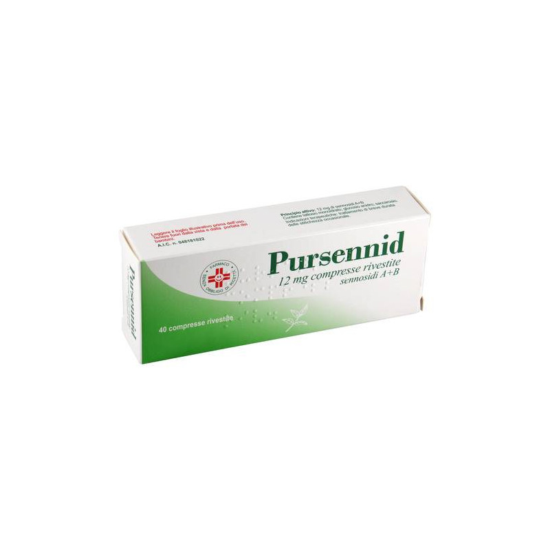 AVVERTENZE La dose stabilita non deve essere superata. L'uso indiscriminato prolungato dei lassativi puo' portare ad assuefazione e ad un deterioramento delle funzioni intestinali. Deve essere impiegato il dosaggio efficace piu' basso per il ristabilirsi della normale funzione intestinale.Se non e' stato raggiunto alcun miglioramento a livello intestinale, il dosaggio puo' essere aumentato sotto supervisione medica. I prodotticontenenti senna e sennosidi devono essere usati solamente se non puo' essere ottenuto un effetto terapeutico attraverso un cambiamento della dieta o la somministrazione di agenti formanti massa. L'uso di questi farmaci richiede la supervisione medica: se non si sortiscono effetti positivi a seguito del trattamento; se l'uso si prolunga oltre unasettimana di trattamento; se i sintomi persistono o peggiorano; dopo una laparotomia o chirurgia addominale; se e' presente eruzione cutanea, perche' puo' essere un segnale di ipersensibilita'; se sono presentinausea e vomito, perche' questi sintomi possono essere segni di un potenziale o esistente blocco intestinale (ileo); in bambini tra i 10 ei 12 anni. Informazioni relative agli eccipienti. Lattosio: i pazientiaffetti da rari problemi ereditari di intolleranza al galattosio, dadeficit totale di lattasi, o da malassorbimento di glucosio-galattosio, non devono assumere questo medicinale. Glucosio: i pazienti affettida rari problemi di malassorbimento di glucosio-galattosio, non devonoassumere questo medicinale. Saccarosio: i pazienti affetti da rari problemi ereditari di intolleranza al fruttosio, da malassorbimento di glucosio-galattosio, o da insufficienza di sucrasi isomaltasi, non devono assumere questo medicinale. CATEGORIA FARMACOTERAPEUTICA Lassativo stimolante. CONSERVAZIONE Questo medicinale non richiede alcuna condizione particolare di conservazione. CONTROINDICAZIONI/EFF.SECONDAR Ipersensibilita' al principio attivo o ad uno qualsiasi degli eccipienti elencati al paragrafo 6.1. Controindicato qualora sussistano le seguenti condizioni mediche: malattie infiammatorie dell'apparato digerente (i.e. Morbo di Crohn, rettocolite ulcerosa, epatopatie, peritonitie malattie infiammatorie intestinali); irritazione o ostruzione del tratto gastrointestinale (i.e. costipazione spastica, ostruzione dell'ileo/preileo, crampi e dolori, nausea, vomito e coliche); sintomi addominali che possono essere dovuti ad una condizione sottostante non diagnosticata, come condizioni acute intestinali che possono richiedere unintervento chirurgico (i.e. diverticolite acuta, appendicite e diarreamassiva); stati di severa disidratazione, con perdita di acqua ed elettroliti, specialmente ipopotassiemia. Controindicato nei bambini di eta' inferiore a 10 anni. DENOMINAZIONE PURSENNID 12 MG COMPRESSE RIVESTITE ECCIPIENTI Lattosio monoidrato; acido stearico; talco; amido di mais; glucosio anidro; saccarosio; gomma arabica; silice colloidale anidra; titanio diossido; cetile palmitato. EFFETTI INDESIDERATI Questo medicinale puo' causare lieve malessere addominale come doloreaddominale, crampi, irritazione della mucosa colica e gastrica. Sono stati anche segnalati altri effetti quali disidratazione, ipotensione,fatica, miopatie, dolore di stomaco, iponatremia, disordini renali, iperaldosteronismo secondario, ipocalcemia e ipomagnesemia. Queste reazioni avverse sono solitamente reversibili una volta interrotta l'assunzione del lassativo. L'uso prolungato o il sovradosaggio di questo farmaco possono causare nausea, diarrea con eccessiva perdita di elettroliti, specialmente potassio (ipopotassiemia). C'e' anche la possibilita'di sviluppare megacolon. Durante il trattamento puo' manifestarsi unacolorazione giallo-brunastra (pH-dipendente) delle urine dovuta ai metaboliti, che non ha alcun significato clinico. E' stata segnalata assuefazione dopo trattamento prolungato. Le reazioni avverse sono elencate di seguito in base al sistema organi classi e frequenza. Le frequenze sono definite come: molto comune (>= 1/10); comune (>= 1/100, < 1/10); non comune (>= 1/1.000, < 1/100); raro (>= 1/10.000; < 1/1.000); molto raro (< 1/10.000); o non nota (la frequenza non puo' essere definita sulla base dei dati disponibili). Effetti indesiderati nell'esperienza post-commercializzazione. Disturbi del sistema immunitario. Non nota: reazioni di ipersensibilita' (prurito, orticaria, esantema localeo generalizzato). Patologie gastrointestinali. Non nota: megacolon, dolore addominale, diarrea, nausea, malessere addominale. Patologie sistemiche e condizioni relative alla sede di somministrazione. Non nota:fatica, tolleranza al farmaco. Patologie del sistema muscoloscheletrico e del tessuto connettivo. Non nota: miopatia. Patologie renali e urinarie. Non nota: problemi renali, cromaturia. Disturbi del metabolismo e della nutrizione. Non nota: iperaldosteronismo, ipocalcemia, ipomagnesemia, disidratazione, ipopotassiemia, iponatremia, diminuzione degli elettroliti ematici. Patologie vascolari. Non notaipotensione. Glieventi avversi elencati sopra sono basati su segnalazioni spontanee post- commercializzazione e rappresentano una stima meno precisa dell'incidenza che si otterrebbe negli studi clinici. Popolazione pediatrica:sono previsti la stessa frequenza, tipo e severita' degli eventi avversi nei bambini e negli adulti. Segnalazione delle reazioni avverse sospette. La segnalazione delle reazioni avverse sospette che si verificano dopo l'autorizzazione del medicinale e' importante, in quanto permette un monitoraggio continuo del rapporto beneficio/rischio del medicinale. Agli operatori sanitari e' richiesto di segnalare qualsiasi reazione avversa sospetta tramite il sistema nazionale di segnalazione all'indirizzo https://www.aifa.gov.it/content/segnalazioni-reazioni-avverse. GRAVIDANZA E ALLATTAMENTO Gravidanza: non sono disponibili dati adeguati sull'uso dei sennosidinelle donne in gravidanza. Gli studi sugli animali non hanno mostratouna tossicita' riproduttiva. Il rischio po