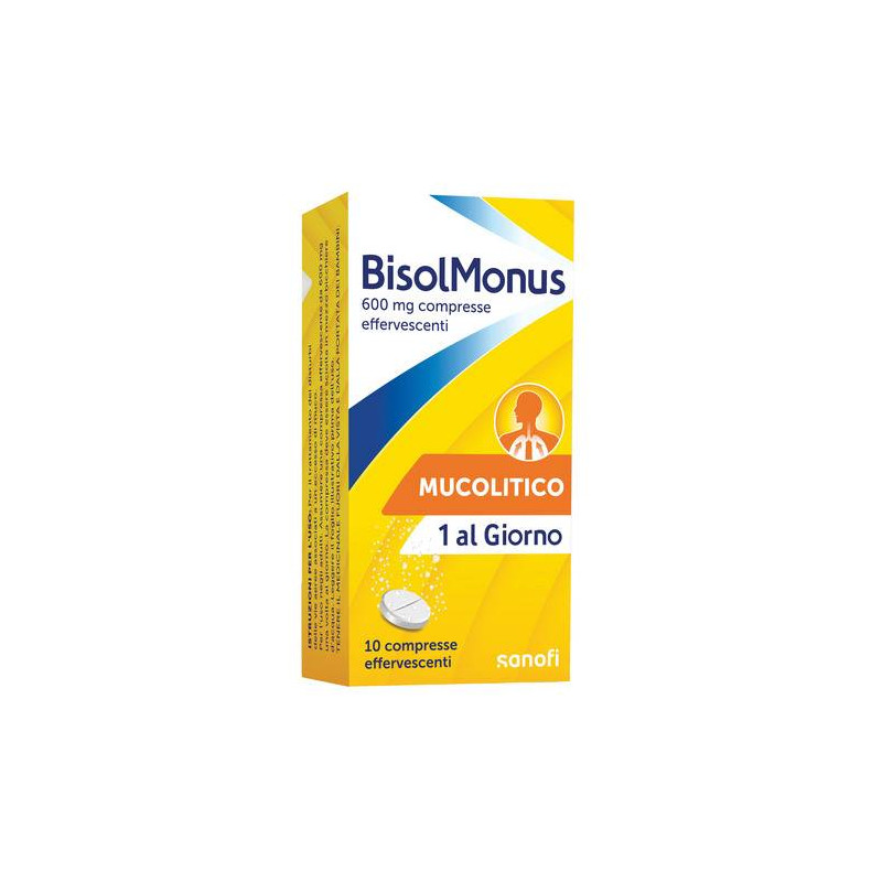 AVVERTENZE Somministrare con cautela ai pazienti asmatici o a quelli con anamnesi di broncospasmo. In caso di broncospasmo, l'uso di Bisolmonus deve essere interrotto immediatamente. Prestare attenzione nei pazienti con anamnesi di ulcera peptica, specialmente se il paziente utilizza altri medicinali noti per irritare la mucosa del tratto gastrointestinale. Reazioni cutanee gravi, tra cui la sindrome di Steven-Johnson e la sindrome di Lyell, sono state segnalate molto raramente in associazione temporale all'uso di acetilcisteina. Nella maggior parte dei casi potrebbero essere spiegate dalla malattia sottostante del paziente e/o da un medicinale concomitante. Se si verificano nuove lesioni cutanee o mucosali, e' necessario richiedere immediatamente consulenza medica e il trattamento con acetilcisteina deve essere interrotto per precauzione. Somministrare con cautela ai pazienti con un riflesso della tosse ridotto (ad es. pazienti anziani o fragili) in quanto soprattutto all'inizio del trattamento con acetilcisteina, la secrezione bronchiale puo' aumentare di volume a causa della liquefazione. Quando un paziente non e' in grado di espellere efficacemente le secrezioni con la tosse, e' necessario eseguire un drenaggio posturale e bronco-aspirazione. I mucolitici possono ostruire le vie aeree dei bambini di eta' inferiore a 2 anni a causa delle caratteristiche fisiologiche delle vie aeree in questa fascia di eta'. Potrebbe esserci scarsa capacita' di espellere il muco tossendo. I mucolitici non devono pertanto essere usati nei bambini di eta' inferiore a 2 anni. Interazione con gli esami di laboratorio: l'acetilcisteina puo' influire sul test colorimetrico del salicilato e sul test dei chetoni nelle urine. La presenza di un lieve odore sulfureo non indica alcun cambiamento nella preparazione, ma e' specifico del principio attivo. Eccipienti: questo medicinale contiene lattosio. I pazienti che presentano rari problemi ereditari di intolleranza al galattosio, deficit di lattasi di Lapp o malassorbimento glucosio-galattosio non devono prendere questo medicinale. Questo medicinale contiene sorbitolo. I pazienti che presentano rari problemi ereditari di intolleranza al fruttosio non devono prendere questo medicinale. Questo medicinale contiene 6,03 mmol (o 138,8 mg) di sodio per dose. Da tenere in considerazione nei pazienti che seguono una dieta iposodica. CATEGORIA FARMACOTERAPEUTICA Preparati per tosse e raffreddore, espettoranti, escl. combinazioni con soppressori della tosse, mucolitici. CONSERVAZIONE Conservare nella confezione originale per proteggere il medicinale dall'umidita'. Confezione in foglio di alluminio laminato: non richiede alcuna condizione speciale di temperatura di conservazione. Tubi in polipropilene con tappi in polietilene contenenti un essiccante: non conservare a temperature superiori a 30 gradi C. CONTROINDICAZIONI/EFF.SECONDAR Ipersensibilita' al principio attivo o ad uno qualsiasi degli eccipienti elencati al paragrafo 6.1. Bambini di eta' inferiore a 2 anni. DENOMINAZIONE BISOLMONUS 600 MG COMPRESSE EFFERVESCENTI ECCIPIENTI Acido citrico, anidro, acido ascorbico, citrato di sodio, ciclamato di sodio, saccarina sodica, mannitolo, idrogenocarbonato di sodio, carbonato di sodio, anidro, lattosio, anidro, magnesio stearato; aroma di limone "AU", codice 132 composto da: olio di limone naturale, olio di limone naturale/identico a quello naturale, mannitolo (E421), maltodestrina, gluconolattone (E575), sorbitolo (E420), silice, colloidale anidra (E551). EFFETTI INDESIDERATI La seguente elenco mostra gli effetti indesiderati dopo l'uso orale dell'acetilcisteina in base alla classificazione per sistemi ed organi (System Organ Class, SOC). Disturbi del sistema immunitario. Non comune (da >=1/1.000 a <1/100): reazioni da ipersensibilita'*; molto raro (<1/10.000): reazioni anafilattiche/ anafilattoidi, da shock anafilattico. Patologie del sistema nervoso. Non comune (da >=1/1.000 a <1/100): cefalea. Patologie dell'orecchio e del labirinto. Non comune (da >=1/1.000 a <1/100): tinnito. Patologie vascolari. Molto raro (<1/10.000): sanguinamento. Patologie gastrointestinali. Non comune (da >=1/1.000 a <1/100): stomatite, dolore addominale, nausea vomito, diarrea; raro (da >=1/10.000 a <1/1.000): dispepsia. Patologie della cute e del tessuto sottocutaneo. Non nota (la frequenza non puo' essere definita sulla base dei dati disponibili): edema facciale. Patologie sistemiche e condizioni relative alla sede di somministrazione. Non comune (da >=1/1.000 a <1/100): piressia. Esami diagnostici. Non comune (da >=1/1.000 a <1/100): pressione arteriosa abbassata. *Le reazioni di ipersensibilita' comprendono broncospasmi, dispnea, prurito, orticaria, eruzione cutanea, angioedema e tachicardia. Descrizione di reazioni avverse selezionate: e' stata confermata in vari studi una diminuzione dell'aggregazione piastrinica in presenza di acetilcisteina. Il suo significato clinico non e' ancora stato stabilito. Nei pazienti con ulcera peptica o anamnesi della stessa, l'acetilcisteina puo' avere un effetto indesiderato sulla mucosa gastrica. Segnalazione delle reazioni avverse sospette. La segnalazione delle reazioni avverse sospette che si verificano dopo l'autorizzazione del medicinale e' importante, in quanto permette un monitoraggio continuo del rapporto beneficio/rischio del medicinale. Agli operatori sanitari e' richiesto di segnalare qualsiasi reazione avversa sospetta tramite il sistema nazionale di segnalazione www.agenziafarmaco.gov.it/content/come-segnalare-una-sospetta-re azione-avversa. GRAVIDANZA E ALLATTAMENTO Gravidanza: i dati sull'uso dell'acetilcisteina nelle donne in gravidanza sono limitati. Gli studi sugli animali non indicano effetti dannosi diretti o indiretti di tossicita' riproduttiva (vedere paragrafo 5.3). L'acetilcisteina attraversa la placenta. I dati disponibili non indicano un rischio per il bambino. Come misura precauzionale, e' preferibile evitare l'uso di Bisolmonus d