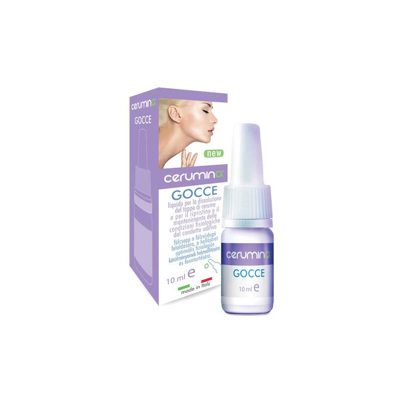 CERUMINA GOCCE Dispositivo medico CE, classe I, non sterile. Liquido per la dissoluzione del tappo di cerume e la corretta pulizia della cavità auricolare. Liquido ad uso otologico per la rimozione/prevenzione del tappo di cerume e la corretta pulizia della cavità auricolare con ripristino della funzione uditiva alterata dalla presenza del tappo di cerume.