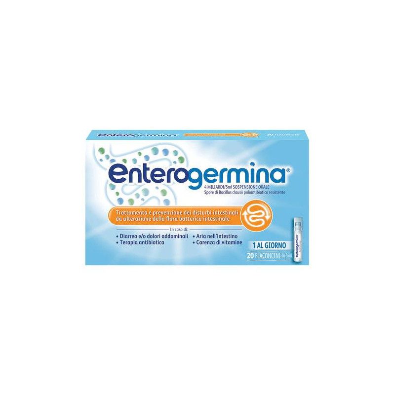 Avvertenze speciali. Batteriemia/sepsi: dopo l'immissione in commerciosono stati segnalati casi di batteriemia, setticemia e sepsi in pazienti immunocompromessi o gravemente malati e in neonati pretermine. Nelcaso di alcuni pazienti malati in condizioni critiche, l'esito e' stato fatale. Enterogermina deve essere evitato in questi gruppi di pazienti (vedere paragrafo 4.8). Questo medicinale e' solo per uso orale. Non iniettare o somministrare per altre vie. Un uso non corretto del medicinale ha provocato reazioni anafilattiche gravi come shock anafilattico. Precauzioni d'impiego: nel corso di terapia antibiotica si consiglia di somministrare il preparato nell'intervallo fra l'una e l'altrasomministrazione di antibiotico. L'eventuale presenza di corpuscoli visibili nei flaconcini di Enterogermina e' dovuta ad aggregati di spore di Bacillus clausii; non e' pertanto indice di prodotto alterato. Agitare il flaconcino prima dell'uso.