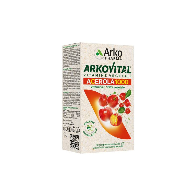 Integratore alimentare a base di Acerola. Con zucchero ed edulcorante.
