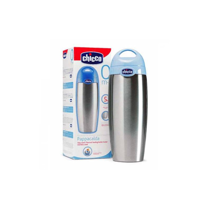 Portabiberon Termico InoxCaratteristiche: è concepito per contenere nella guaina in plastica protettiva tutti i tipi di biberon Chicco Mangiafacile, Simply Fun e Benessere e mantenere il calore dell’alimento contenuto per almeno 5 ore.