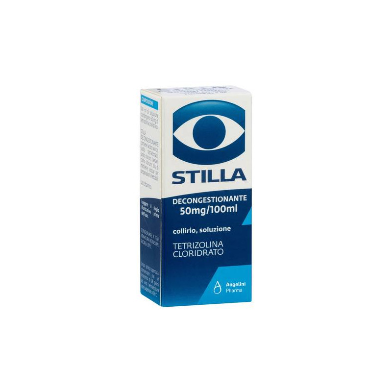 AVVERTENZE Il prodotto, pur presentando uno scarso assorbimento sistemico, deve essere usato con cautela nei pazienti affetti da ipertensione, ipertiroidismo, disturbi cardiaci, diabete e nei pazienti in trattamento con farmaci anti-MAO (tranilcipromina, fenelzina, pargillina). Infezioni, pus, corpi estranei nell'occhio, danni meccanici, chimici, da calore richiedono l'attenzione del medico. Se i sintomi, dopo breve periodo di trattamento, persistono o si aggravano, consultare il medico. Nei bambini l'ingestione accidentale puo' provocare sedazione spiccata. La formulazione in contenitori monodose viene presentata in singole dosi sterili, ognuna delle quali contiene la quantita' di collirio sufficiente per una applicazione ad entrambi gli occhi. La confezione unidose protegge il collirio da qualsiasi contaminazione e ne assicura la sterilita' e la stabilita' senza bisogno di conservanti, potendo pertanto essere usato anche dai portatori di lenti a contatto. Lasciar trascorrere 5 minuti tra l'utilizzo del collirio e l'applicazione delle lenti a contatto. CATEGORIA FARMACOTERAPEUTICA Decongestionanti ed antiallergici. CONSERVAZIONE Flacone da 5 ml e flacone da 8 ml: conservare a temperatura non superiore a 25 gradi C; dopo prima apertura conservare per un massimo di 28 giorni ad una temperatura non superiore a 25 gradi C. Contenitore monodose da 0,3 ml: nessuna speciale precauzione per la conservazione; dopo l'apertura della busta di alluminio, il prodotto deve essere consumato entro 30 giorni. CONTROINDICAZIONI/EFF.SECONDAR Ipersensibilita' verso i componenti o verso altre sostanze strettamente correlate dal punto di vista chimico. Non deve essere usato nei soggetti con glaucoma o con altre gravi malattie dell'occhio e nei bambini sotto i tre anni di eta'. DENOMINAZIONE STILLA DECONGESTIONANTE 0,05% COLLIRIO ECCIPIENTI Collirio in flacone: acido borico, sodio tetraborato, sodio cloruro, benzalconio cloruro, bleu di metilene, acqua per preparazioni iniettabili q.b. Collirio in contenitori monodose: glicerolo, acido borico, sodio borato, polisorbato 80, acqua per preparazioni iniettabili q.b. EFFETTI INDESIDERATI L'uso del prodotto puo' determinare talvolta dilatazione pupillare, aumento della pressione endoculare, nausea, cefalea. Raramente possono manifestarsi fenomeni di ipersensibilita'. Solo con dosi molto elevate possono verificarsi ipertensione, disturbi cardiaci o iperglicemia. In questi casi occorre interrompere il trattamento e consultare il medico affinche', ove necessario, possa essere istituita una terapia idonea. GRAVIDANZA E ALLATTAMENTO In gravidanza, allattamento e nei bambini usare solo in caso di effettiva necessita', dopo aver consultato il medico. INDICAZIONI Irritazione, bruciore, arrossamento, prurito dell'occhio dovuto a cause allergiche o fisiche (eccessiva esposizione ai raggi solari o al riverbero delle nevi o ai fari abbaglianti nei viaggi notturni in auto o alla polvere negli ambienti di lavoro, ecc.). INTERAZIONI Non sono note. POSOLOGIA Instillare 1 o 2 gocce per occhio, 2-3 volte al giorno. Il prodotto non deve essere impiegato per piu' di 4 giorni consecutivi. Non superare le dosi consigliate. Nei bambini al di sotto dei 12 anni (e al di sopra dei 3 anni di eta') utilizzare il medicinale solo dietro consiglio del medico. PRINCIPI ATTIVI 100 ml contengono 0,05 g di tetrizolina cloridrato.