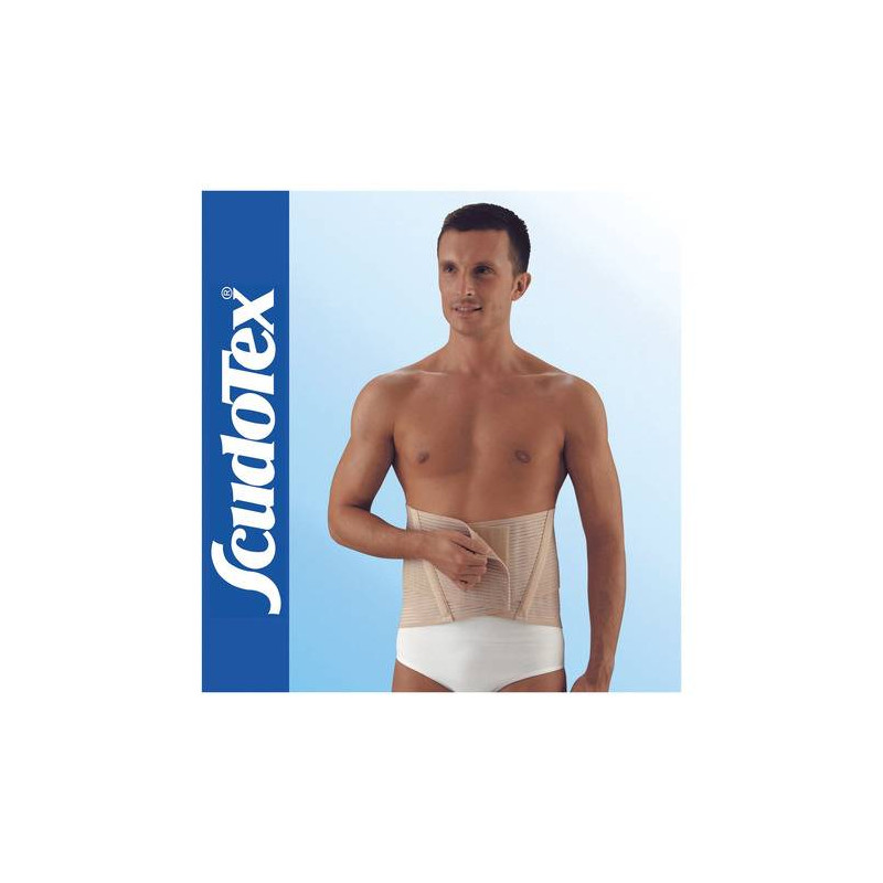 Caratteristiche: corsetto in igienico tessuto traspirante in cotone elasticizzato, rinforzato con incrocio dorsale sostenitivo.